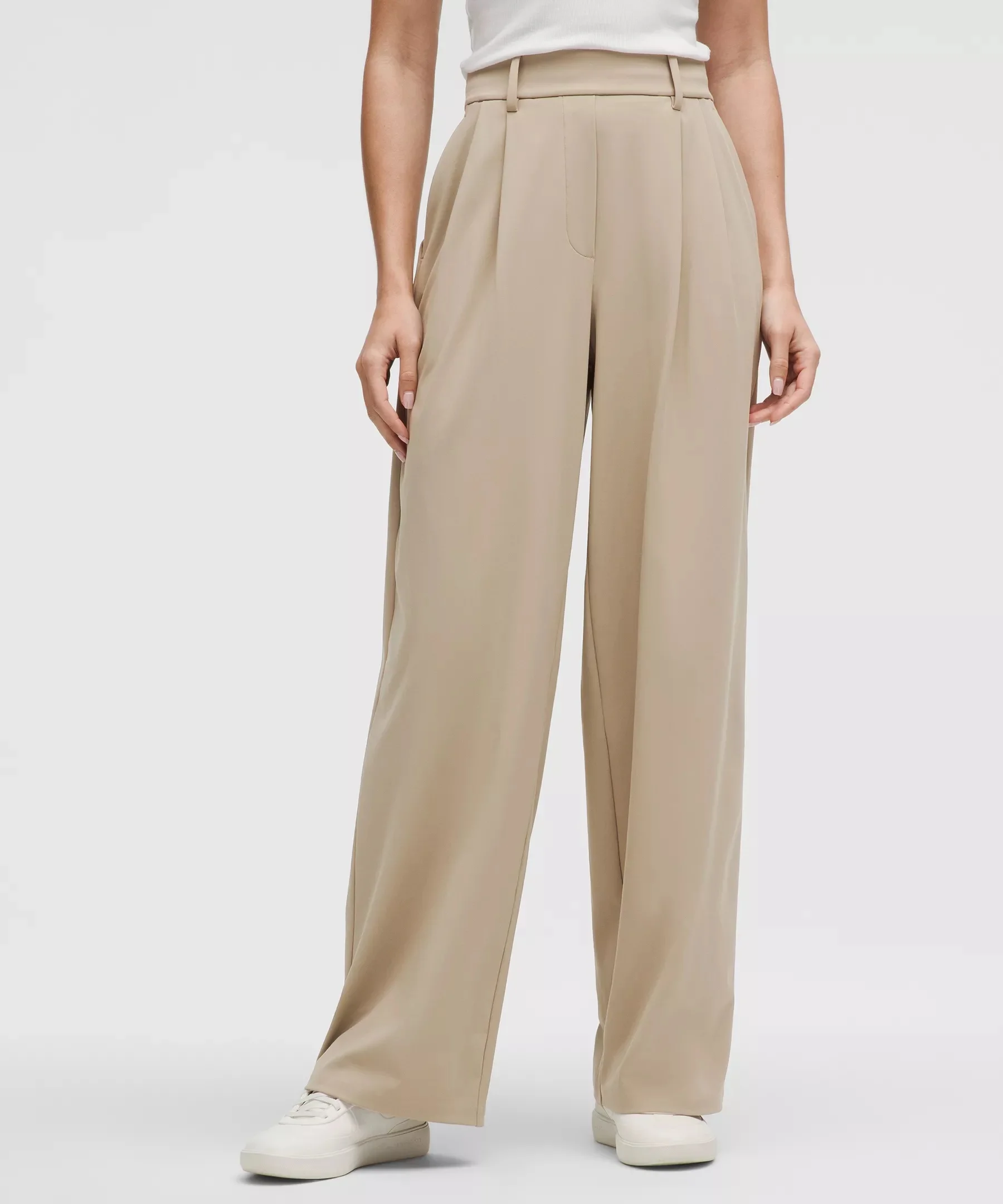 Sweat-Wicking, Luxtreme™ Fabric Sweat-wicking Four-way stretch Breathable Feels cool to the touch Added Lycra® fibre for stretch and shape retention High Rise, Full Length Relaxed fit is roomy through glutes and thighs 29.5" inseam, intended to skim the floor for heights of 5'4" and under Product Features Hand pockets with hidden card sleeve Back welt pockets are stitched closed—snip open to use Cinch the interior drawcord to customize your fit Faux fly Material and care Materials Pockets: 86% Recycled Polyester14% Elastane Body: 69% Nylon31% Lycra Elastane Care Wash with like colours Machine wash cold Do not bleach Tumble dry low Do not iron Do not dry clean