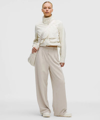Designed for Casual Cottony-Soft Feel, Luon™ Fabric - Cottony soft - Four-way stretch - Sweat-wicking - Added Lycra® fibre for stretch and shape retention High Rise, Full Length - Relaxed fit is roomy through glutes and thighs - 29.5" inseam, intended to skim the floor for 5'4" and under Product Features - Hand pockets, one with a card sleeve - Back welt pockets are stitched closed—snip open to use - Cinch the interior drawcord to customize your fit - Faux fly - Functional belt loops Material and care Materials Body: 60% Nylon29% Polyester11% Lycra Elastane - Pocket Lining: 86% Polyester (recycled)14% Elastane Care Machine Wash Cold - Do Not Bleach - Tumble Dry Low - Low Iron If Needed - Do Not Dry Clean - Wash With Like Colors
