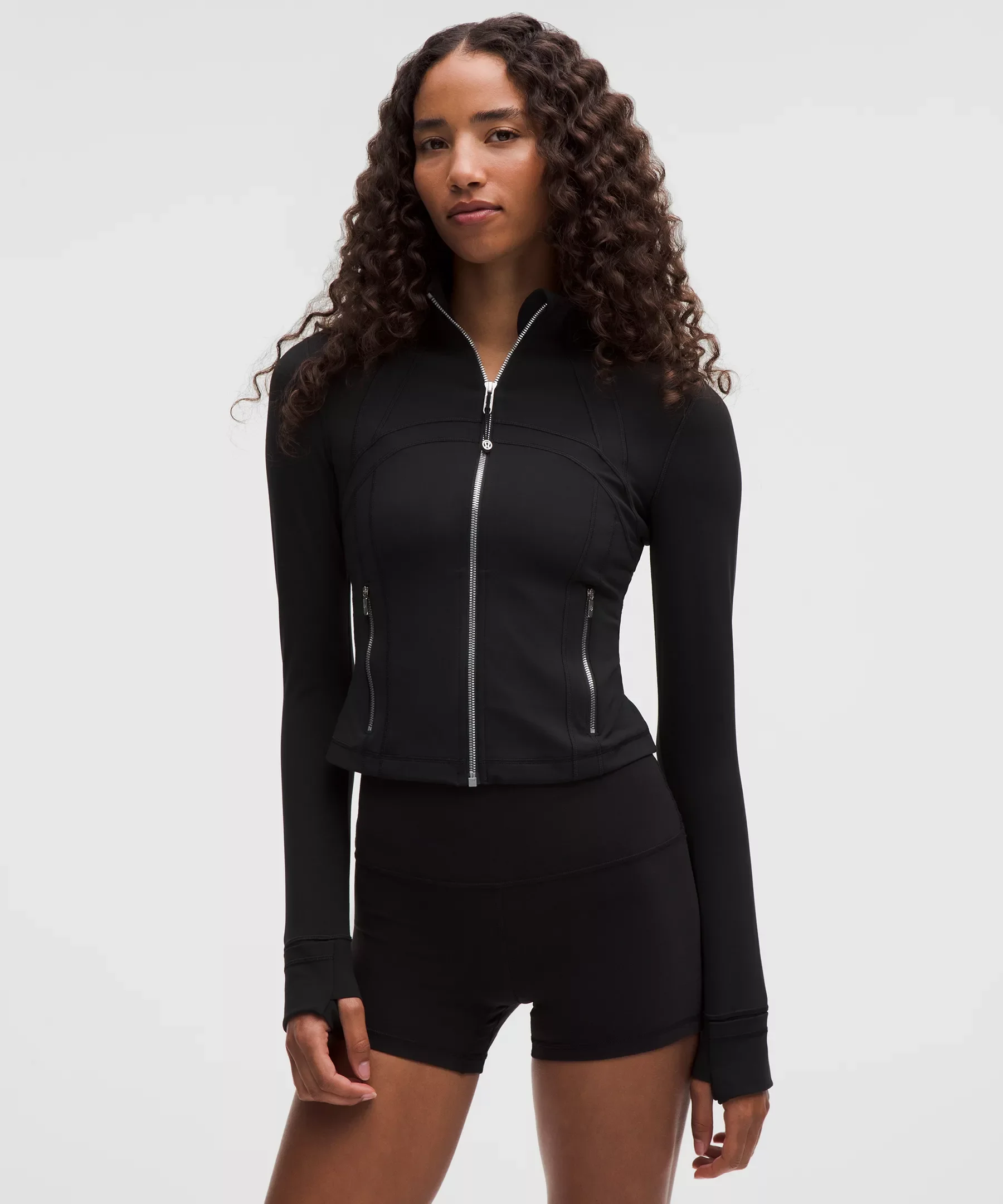 Designed for Casual Feels Buttery-Soft and Weightless, Nulu™ Fabric - So buttery soft, it feels weightless - Four-way stretch - Sweat-wicking - Breathable - Added Lycra® fibre for stretch and shape retention Slim Fit, Waist Length - Skims your body - Not too short, not too long, just right around the waistband Product Features - Zippered pockets - Thumbholes and Cuffins™ keep sleeves down and chills out - Locker loop for easy hanging - Zipper garage keeps chafe in check - Elastic zipper pull doubles as an emergency hair tie Material and care Materials Body: 81% Nylon19% Lycra Elastane - Lining: 56% Polyester33% Coolmax Polyester11% Lycra Elastane Care Machine Wash Cold - Do Not Bleach - Tumble Dry Low - Do Not Iron - Do Not Dry Clean - Wash With Like Colors