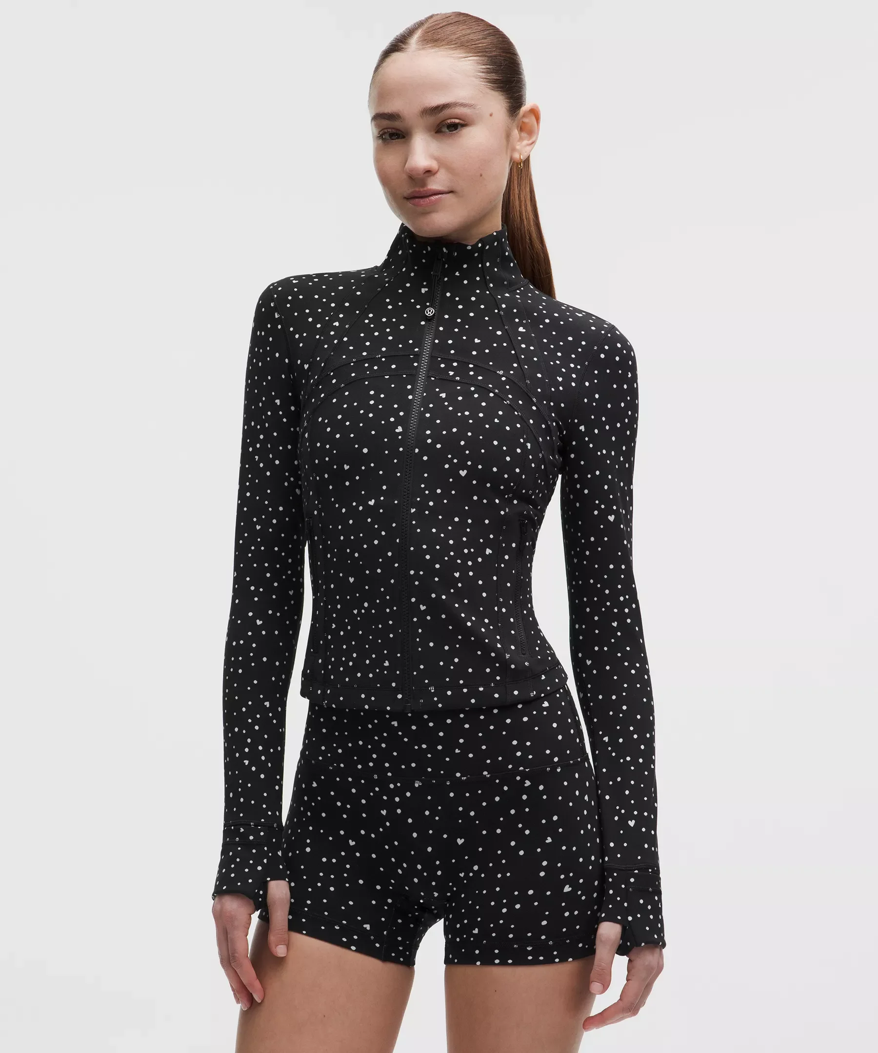 Designed for Casual Feels Buttery-Soft and Weightless, Nulu™ Fabric - So buttery soft, it feels weightless - Four-way stretch - Sweat-wicking - Breathable - Added Lycra® fibre for stretch and shape retention Slim Fit, Waist Length - Skims your body - Not too short, not too long, just right around the waistband Product Features - Zippered pockets - Thumbholes and Cuffins™ keep sleeves down and chills out - Locker loop for easy hanging - Zipper garage keeps chafe in check - Elastic zipper pull doubles as an emergency hair tie Material and care Materials Lining: 56% Polyester33% Coolmax Polyester11% Lycra Elastane - Body: 81% Nylon19% Lycra Elastane Care Machine Wash Cold - Do Not Bleach - Tumble Dry Low - Do Not Iron - Do Not Dry Clean - Wash With Like Colors