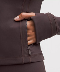Designed for Casual Feels Buttery-Soft and Weightless, Nulu™ Fabric - So buttery soft, it feels weightless - Four-way stretch - Sweat-wicking - Breathable - Added Lycra® fibre for stretch and shape retention Slim Fit, Waist Length - Skims your body - Not too short, not too long, just right around the waistband Product Features - Zippered pockets - Thumbholes and Cuffins™ keep sleeves down and chills out - Locker loop for easy hanging - Zipper garage keeps chafe in check - Elastic zipper pull doubles as an emergency hair tie Material and care Materials Body: 81% Nylon19% Lycra Elastane - Lining: 56% Polyester33% Coolmax Polyester11% Lycra Elastane Care Machine Wash Cold - Do Not Bleach - Tumble Dry Low - Do Not Iron - Do Not Dry Clean - Wash With Like Colors