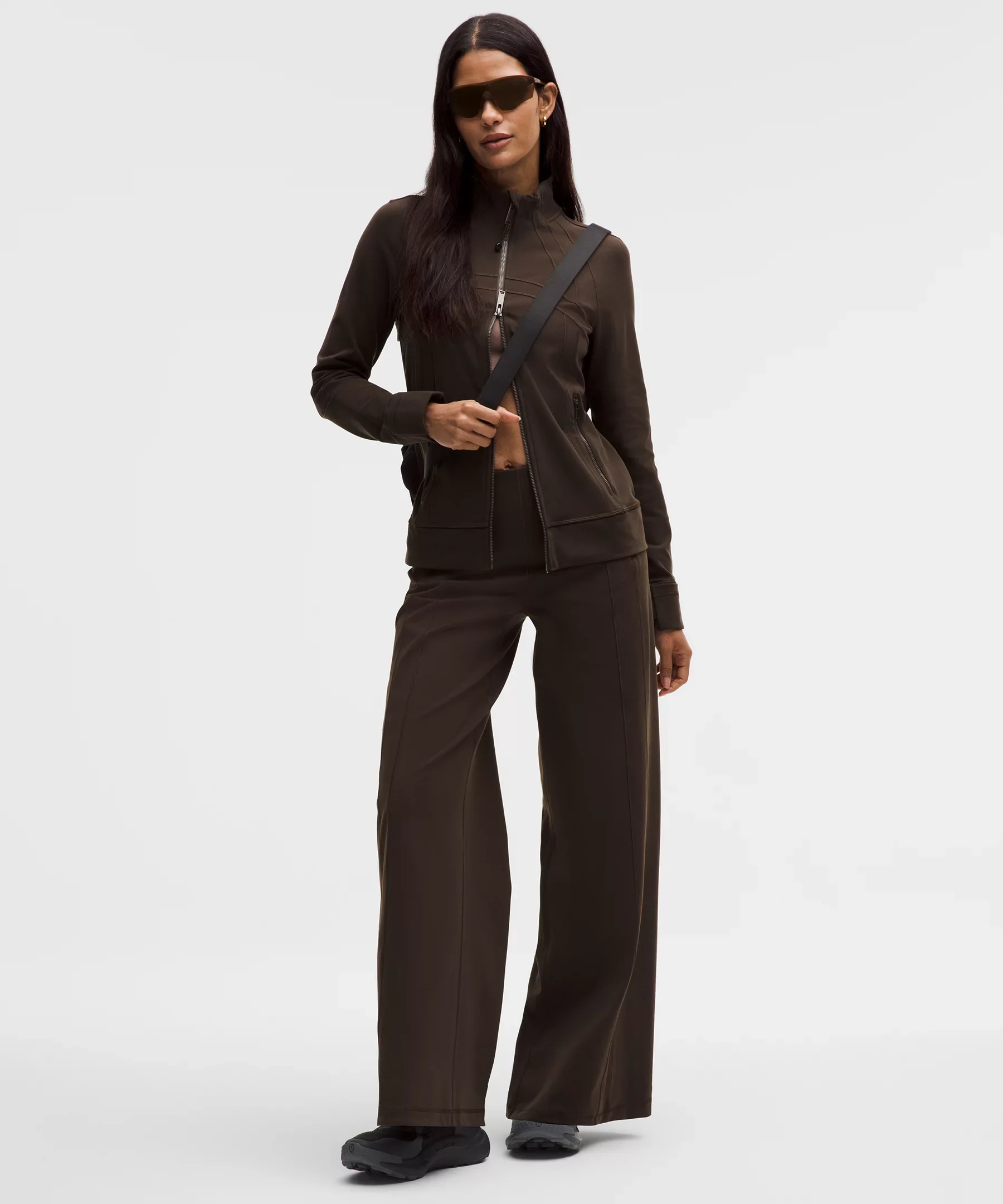 Designed for Casual Cottony-Soft Feel, Luon™ Fabric - Cottony soft - Sweat-wicking - Four-way stretch - Supportive - Breathable - Added Lycra® fibre for stretch and shape retention High Rise, 32.5" Length - Classic fit is an easy fit that floats away from your body - Sits away from body, hip to hem - Full length intended to skim the floor Product Features - Zippered hand pockets - Elastic waistband lies flat and is brushed for comfort - Internal cinchable shockcords at the hems Material and care Materials Pocket Lining: 90% Polyester (recycled)10% Lycra Elastane - Body: 82% Nylon18% Lycra Elastane Care Machine Wash Cold - Do Not Bleach - Tumble Dry Low - Do Not Iron - Do Not Dry Clean - Wash Inside Out With Zipper Fully Closed - Wash With Like Colors