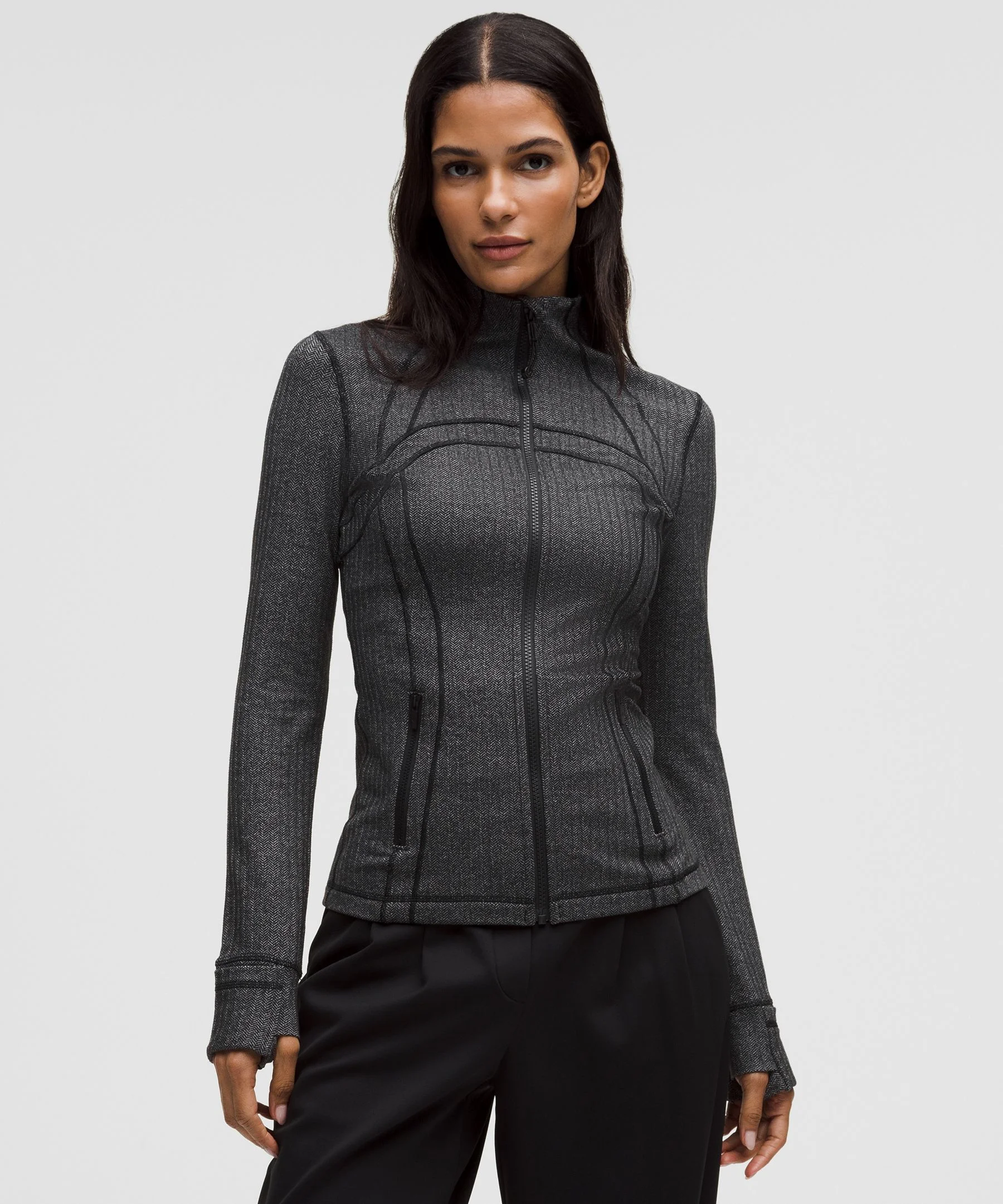 Designed for Casual Cottony-Soft Feel, Luon™ Fabric - Cottony soft - Four-way stretch - Sweat-wicking - Added Lycra® fibre for stretch and shape retention Slim Fit, Hip Length - Skims your body - Sits below the waistband for moderate, everyday coverage Product Features - Zippered pockets - Thumbholes and Cuffins™ keep sleeves down and chills out - Locker loop for easy hanging - Elastic zipper pull doubles as an emergency hair tie Material and care Materials Knuckle Side Pocket: 90% Polyester (recycled)10% Lycra Elastane - Body: 60% Nylon29% Polyester11% Lycra Elastane Care Machine Wash Cold - Do Not Bleach - Tumble Dry Low - Do Not Iron - Do Not Dry Clean - Wash With Like Colors