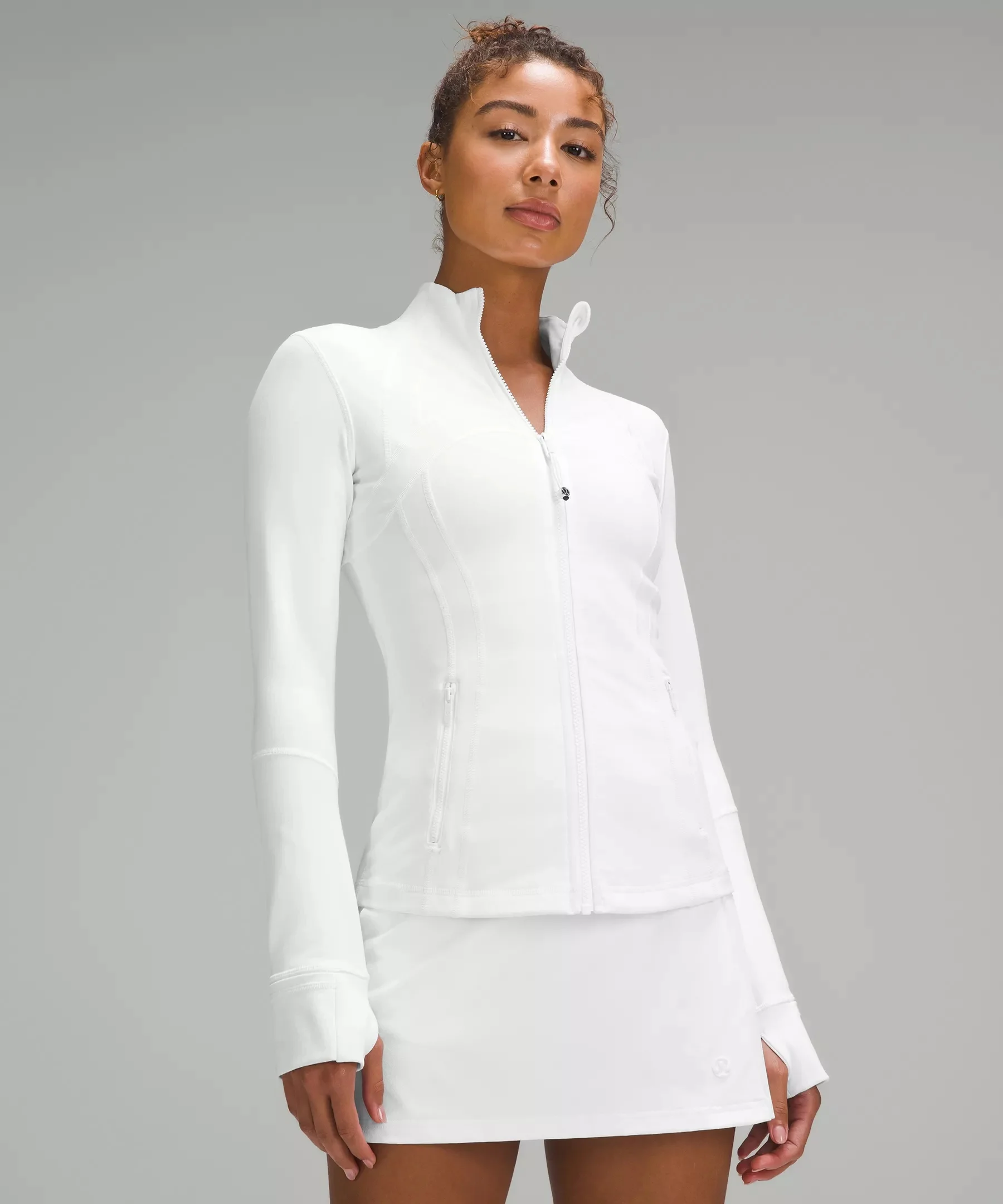 Cottony-Soft Feel, Luon™ Fabric Cottony soft Sweat-wicking Four-way stretch Supportive Breathable Added Lycra® fibre for stretch and shape retention Slim Fit, Hip Length Skims your body Sits below the waistband for moderate, everyday coverage Product Features Zippered pockets Thumbholes and Cuffins™ keep sleeves down and chills out Locker loop for easy hanging Zipper garage keeps chafe in check Elastic zipper pull doubles as an emergency hair tie Material and care Materials Body: 87% Nylon13% Lycra® elastane Lining: 89% Nylon11% Elastane Care Wash with like colours Machine wash cold Do not bleach Tumble dry low Do not iron Do not dry clean Imported