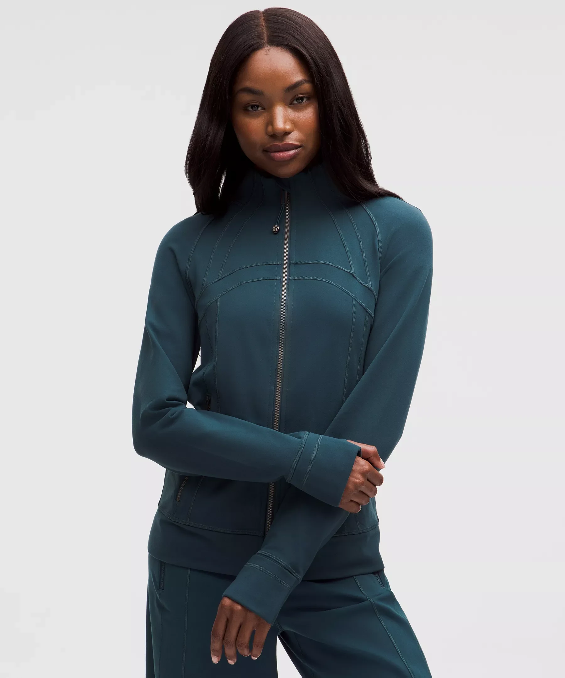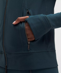 Designed for Casual Cottony-Soft Feel, Luon™ Fabric - Cottony soft - Sweat-wicking - Four-way stretch - Supportive - Breathable - Added Lycra® fibre for stretch and shape retention Classic Fit, Hip Length - An easy fit that floats away from your body - Sits below the waistband for moderate, everyday coverage Product Features - Zippered pockets - Thumbholes and Cuffins™ keep sleeves down and chills out - Locker loop for easy hanging - Zipper garage keeps chafe in check - Elastic zipper pull doubles as an emergency hair tie Material and care Materials Body: 87% Nylon13% Lycra Elastane - Lining: 90% Recycled Polyester10% Lycra Elastane Care Machine Wash Cold - Do Not Bleach - Tumble Dry Low - Do Not Iron - Do Not Dry Clean - Wash With Like Colors