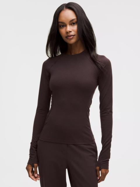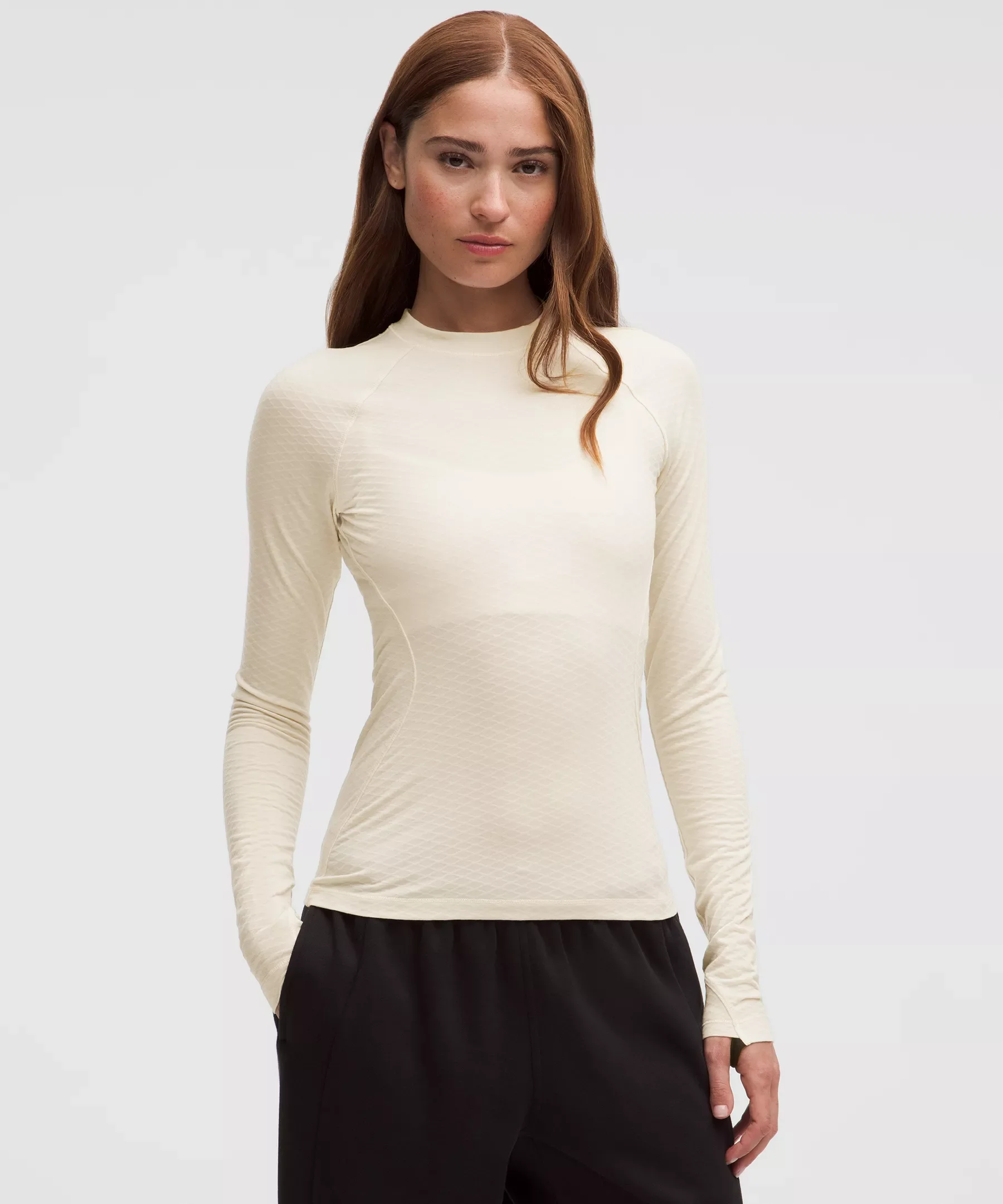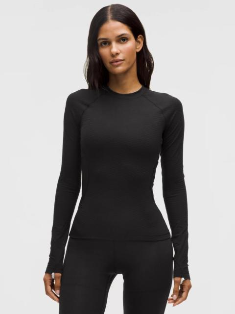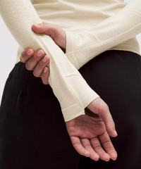 Designed for Hiking Naturally Thermoregulating, Merino Wool-Blend Fabric - Naturally thermoregulating - Soft against skin - Provides mid-warmth - Be gentle and treat with care. Please refer to the material and care section below for full fibre content information and wash instructions - Diamond texture - Fabric is derived from wood-based materials from well-managed forests Tight Fit, Hip Length - Contours your body - Sits below the waistband for moderate, everyday coverage Product Features - Thumbholes help keep sleeves down and hands warm Material and care Materials Body: 57% Tencel Lyocell31% Merino Wool12% Elastane Care Machine Wash Cold Gentle - Do Not Bleach - Tumble Dry Low - Do Not Iron - Do Not Dry Clean - Wash Separately