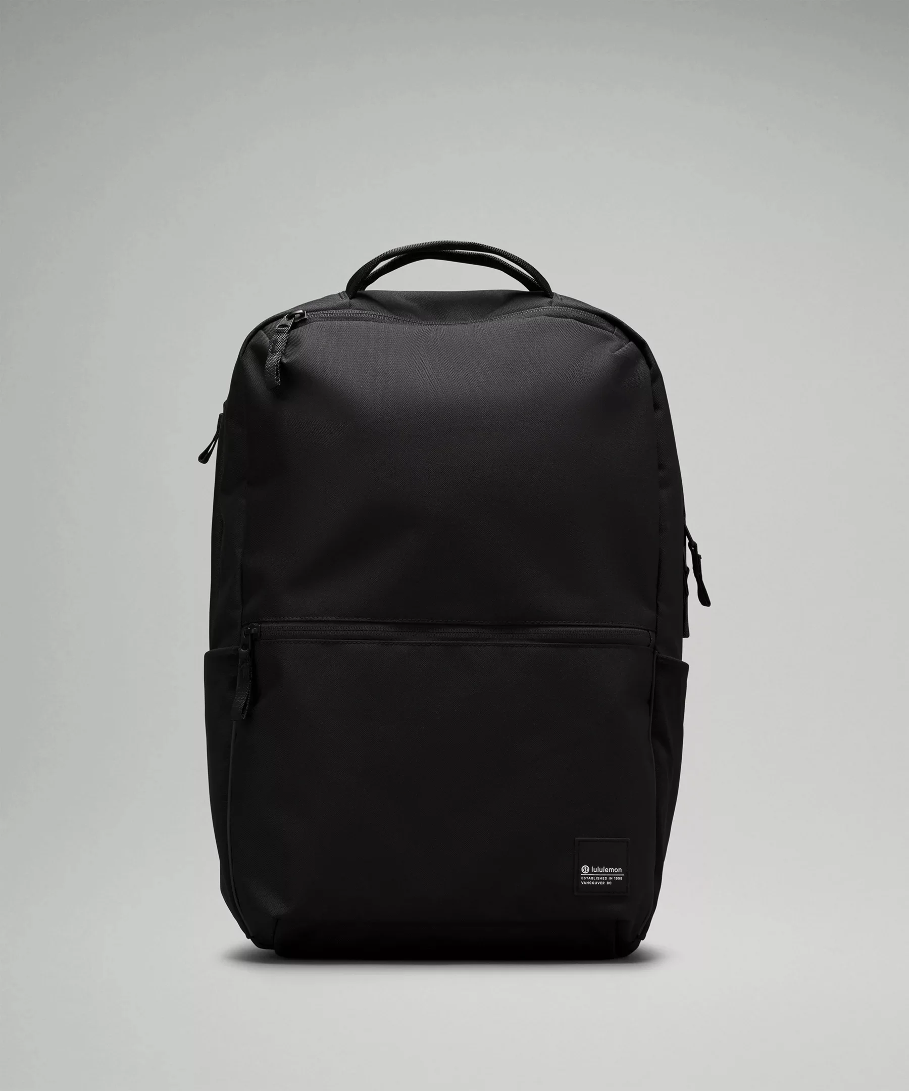 Water-Repellent Fabric Water-repellent This product contains recycled polyester made from repurposed plastic waste Measurements Dimensions: 29cm x 14cm x 46cm (11.4" x 5.5" x 18.1") Volume: 22L Product Features Padded shoulder straps with adjustable sternum strap Back panel provides lumbar support and comfort Side pockets fit most water bottles up to 32oz (946ml) Zippered exterior pockets Exterior padded pocket fits a 16" laptop Interior pockets hold the essentials Trolley-compatible sleeve Reflective details Material and care Materials Back Strap: 100% Polyester Side Pocket: 81% Recycled Polyester19% Elastane Lining: 100% Nylon Body: 100% Recycled Polyester Inner Back Mesh Panel: 100% Recycled Polyester Care Spot clean Do not wash Do not bleach Do not tumble dry Do not iron Do not dry clean Imported