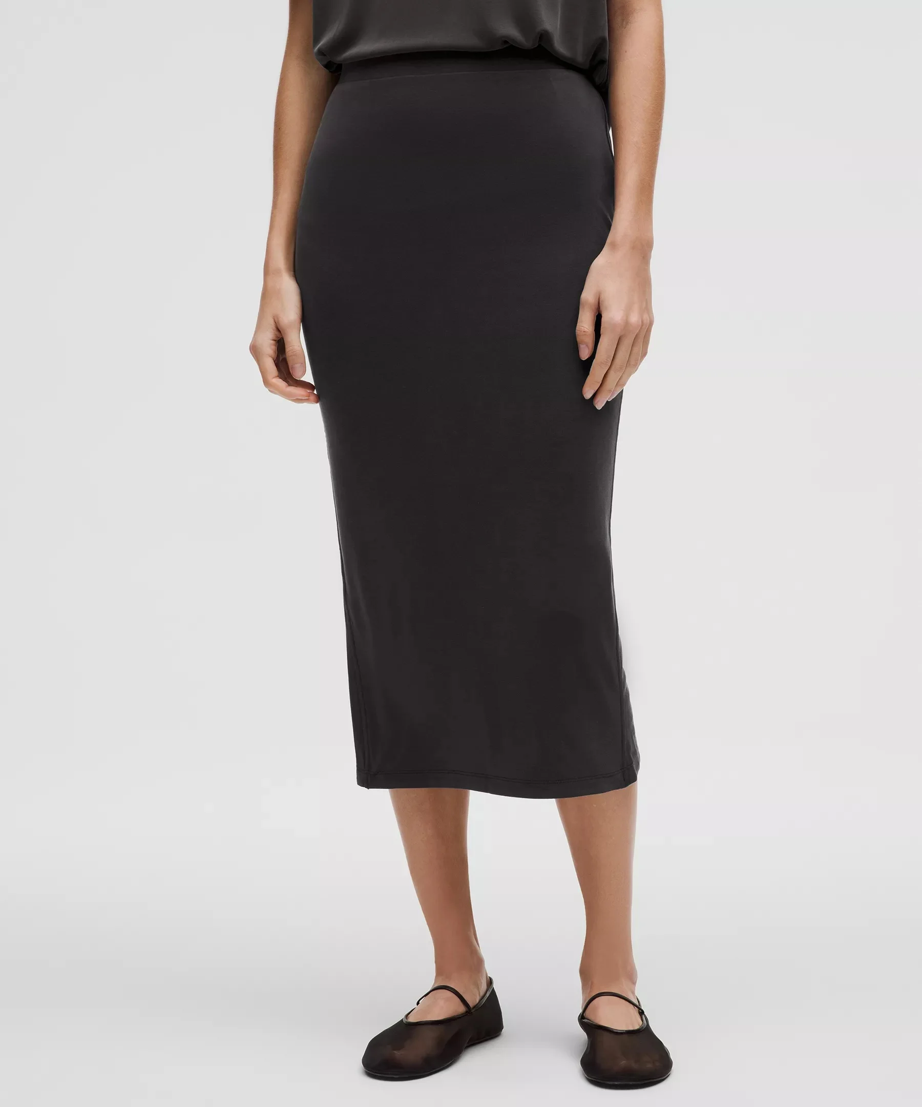 Ultra-Stretchy, Drapey Softstreme™ Fabric Fluid drape Ultra-stretchy Quick-drying Light feel Soft on both sides Four-way stretch Machine washable. Water drops can easily mark this fabric—a simple wash will remove them 100% of the polyester in this product is recycled (excluding trims) Fabric is derived from wood-based materials from well-managed forests High Rise, Midi Length Hits below the knee to just above the ankle Material and care Materials Body: 58% Modal39% Recycled Polyester3% Elastane Care Wash separately Machine wash cold gentle Do not bleach Lay flat to dry Do not iron Do not dry clean Imported