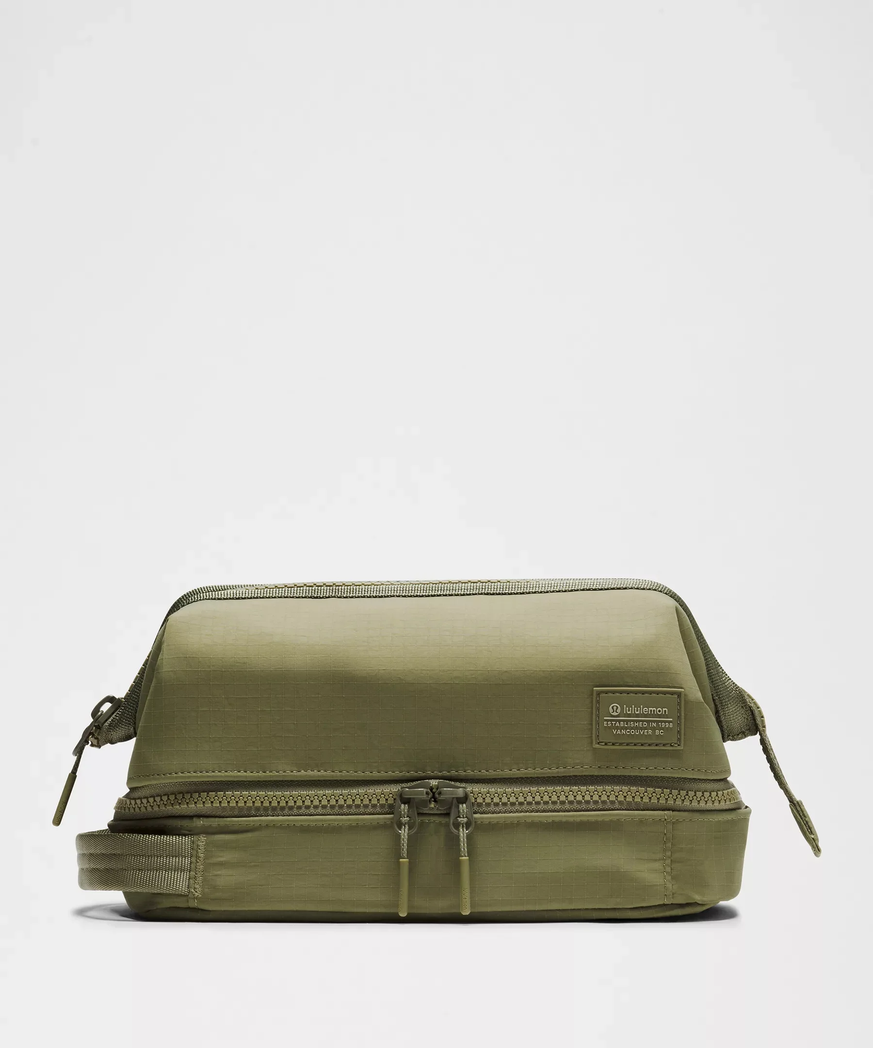 Designed for Casual Water-Repellent Fabric - Water-repellent fabric lining is easy to clean Measurements - Dimensions: W 25cm x D 13cm x H16cm (9.8" x 5.1" x 6.3") - Volume: 4.5L Product Features - Grab handle for easy carrying - Zippered top compartment has a structured wide-mouth opening that makes toiletries easy to find - Interior mesh pockets in top compartment keep toiletries organized - Two-way zippered bottom compartment opens wide so you can find what you need Material and care Materials Lining: Face: 100% Thermoplastic PolyurethaneMiddle: 100% PolyesterBack: 100% Thermoplastic Polyurethane - Lining: 100% Recycled Polyester - Body: 100% Nylon - Mesh: 100% Recycled Polyester Care Do Not Wash - Do Not Bleach - Do Not Tumble Dry - Do Not Iron - Do Not Dry Clean - Spot Clean