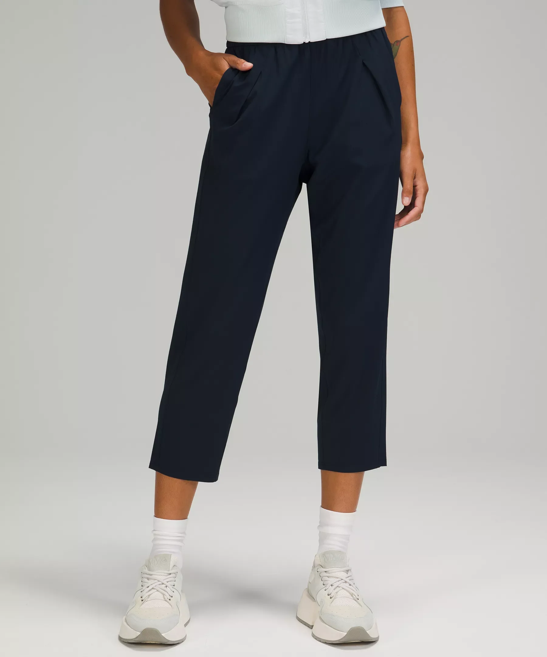 Designed for Casual Lightweight, Swift Fabric - Lightweight - Four-way stretch - Sweat-wicking - Quick-drying Mid Rise, 23" Length - Relaxed fit is roomy through glutes and thighs - Intended to sit below calf Product Features - Elastic waist for easy layering - Front pockets with interior card sleeve Material and care Materials Body: 86% Recycled Polyester14% Elastane - Pocket Lining: 89% Nylon11% Elastane Care Machine Wash Cold - Do Not Bleach - Tumble Dry Low - Do Not Iron - Do Not Dry Clean - Wash With Like Colors