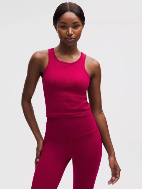 Designed for Yoga and Casual Skip-the-Chafe, Seamless Construction - Minimal seams to reduce chafe - Sweat-wicking - Four-way stretch Light Support, B/C Cups - Intended to provide light support for B/C cups - Tight fit contours your body - Cropped length is cut above the waist—perfect with high-rise pants - Intended for low-impact activities Product Features - Built-in shelf bra for added support and coverage - Pockets for optional, removable cups - Racerback shape allows for full range of movement Material and care Materials Body: 100% Nylon - Bra Lining: 93% Nylon7% Elastane - Bra: 88% Nylon12% Elastane Care Machine Wash Cold - Do Not Bleach - Tumble Dry Low - Do Not Iron - Do Not Dry Clean - Wash With Like Colors