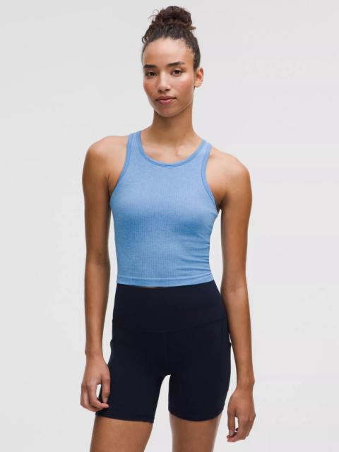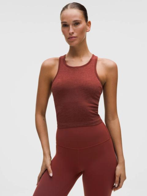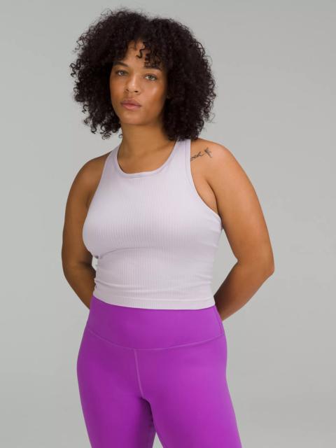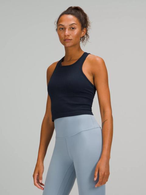 Designed for Yoga Skip-the-Chafe, Seamless Construction - Minimal seams to reduce chafe - Sweat-wicking - Four-way stretch Light Support, B/C Cups - Intended to provide light support for B/C cups - Tight fit contours your body - Cropped length is cut above the waist—perfect with high-rise pants - Intended for low-impact activities Product Features - Built-in shelf bra for added support and coverage - Pockets for optional, removable cups - Racerback shape allows for full range of movement Material and care Materials Bra Lining: 93% Nylon7% Elastane - Body: 100% Nylon - Bra: 88% Nylon12% Elastane Care Machine Wash Cold - Do Not Bleach - Tumble Dry Low - Do Not Iron - Do Not Dry Clean - Wash With Like Colors