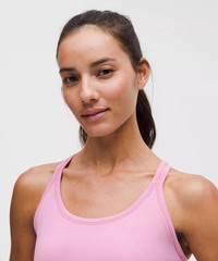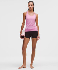 Designed for Yoga and Casual Skip-the-Chafe, Seamless Construction - Minimal seams to reduce chafe - Sweat-wicking - Four-way stretch Light Support, B/C Cups - Intended to provide light support for B/C cups - Slim fit skims your body - Hip length sits below the waistband for moderate, everyday coverage - Intended for low-impact activities Product Features - Built-in shelf bra for added support and coverage - Pockets for optional, removable cups - Racerback shape allows for full range of movement Material and care Materials Bra: 85% Nylon15% Elastane - Body: 100% Nylon - Cup Lining: 95% Nylon5% Elastane Care Machine Wash Cold - Do Not Bleach - Tumble Dry Low - Do Not Iron - Do Not Dry Clean - Wash With Like Colors