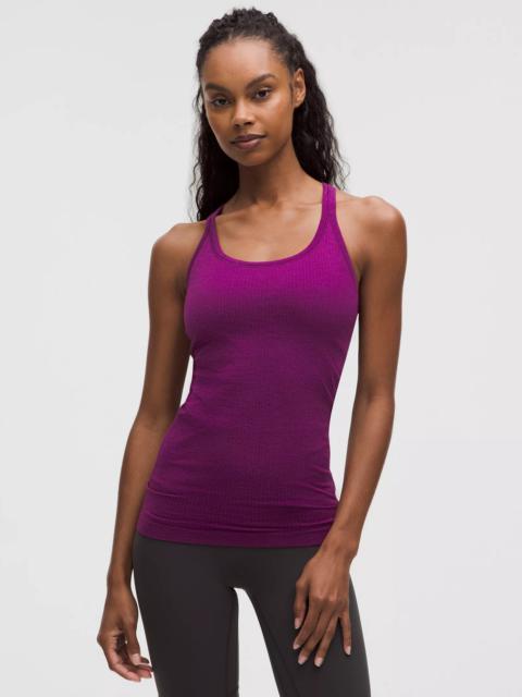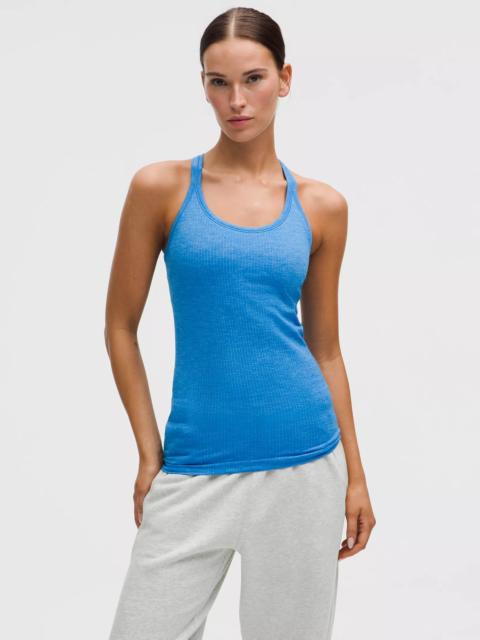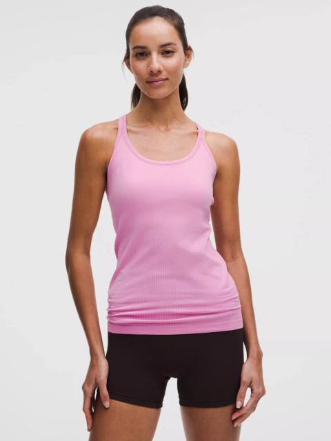 Designed for Yoga Skip-the-Chafe, Seamless Construction - Minimal seams to reduce chafe - Sweat-wicking - Four-way stretch Light Support, B/C Cups - Intended to provide light support for B/C cups - Slim fit skims your body - Hip length sits below the waistband for moderate, everyday coverage - Intended for low-impact activities Product Features - Built-in shelf bra for added support and coverage - Pockets for optional, removable cups - Racerback shape allows for full range of movement Material and care Materials Cup Lining: 95% Nylon5% Elastane - Bra: 85% Nylon15% Elastane - Body: 100% Nylon Care Machine Wash Cold - Do Not Bleach - Tumble Dry Low - Do Not Iron - Do Not Dry Clean - Wash With Like Colors
