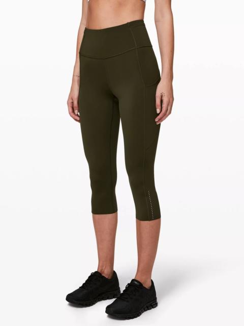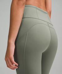 Designed for Running Weightless Coverage, Nulux™ Fabric - Weightless coverage that passes the squat test - Engineered four-way stretch - Quick-drying - Sweat-wicking - Feels sleek and cool to the touch - Added Lycra® fibre for stretch and shape retention - UV protective - UPF 40+ provides very good UV protection to only covered areas. This item's protection may be reduced with use, or if it gets stretched or wet. Sun exposure causes skin damage High Rise, 19" Length - Intended to sit at mid-calf Product Features - Two side drop-in pockets fit your phone - Five drop-in pockets on the waistband hold small items - The tighter waistband and continuous drawcord help keep your leggings in place so you don't have to pull them up mid-run - Reflective details Material and care Materials Body: 84% Nylon16% Lycra Elastane - Waistband Lining: 89% Nylon11% Elastane Care Machine Wash Cold - Do Not Bleach - Tumble Dry Low - Do Not Iron - Do Not Dry Clean - Wash With Like Colors