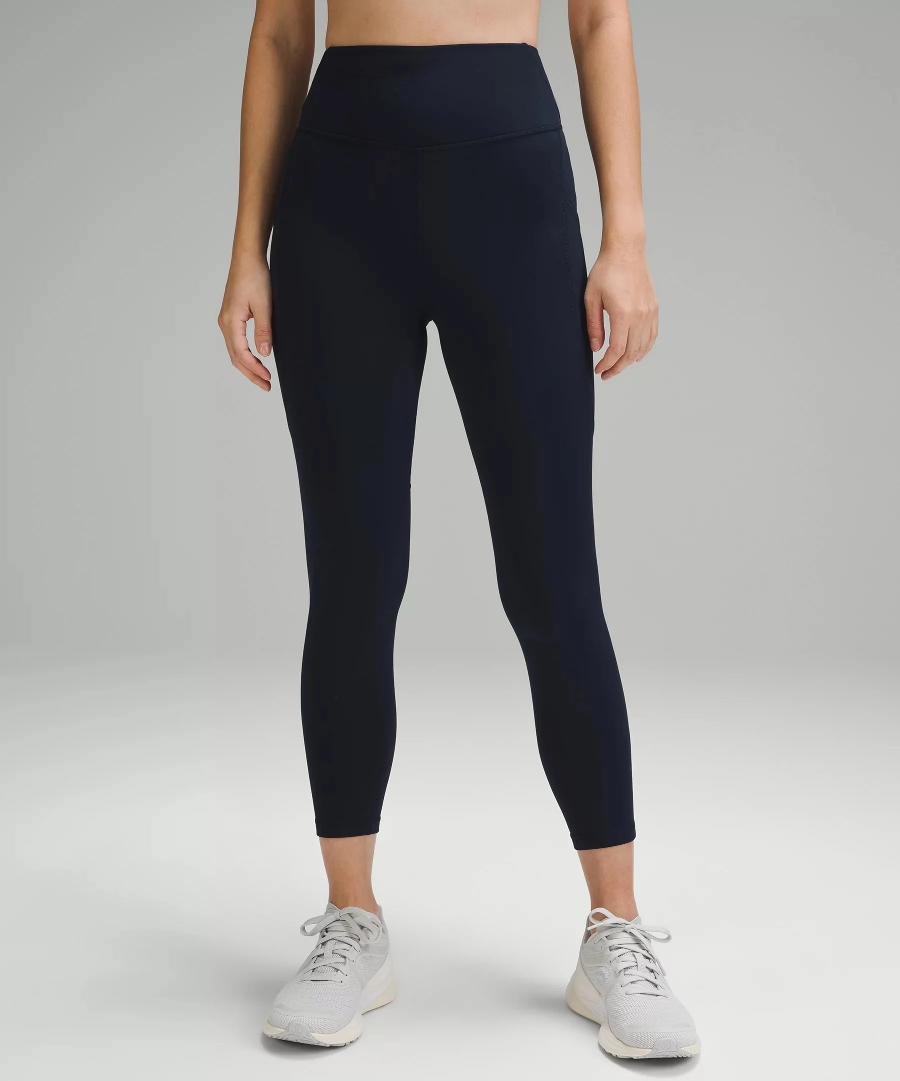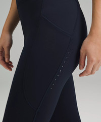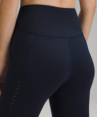 Soft and Warm Brushed Fabric Warm Soft brushed interior Four-way stretch Sweat-wicking Quick-drying 100% of the polyester in this product is recycled (excluding trims) Added Lycra® fibre for stretch and shape retention High Rise, 25" Length Intended to sit above ankle Product Features Two side drop-in pockets on the legs fit your phone Three drop-in pockets on the waistband hold small items Continuous drawcord is easy to cinch, won't get lost in the wash, and helps keep your leggings in place so you don't have to pull them up mid-run Reflective details No inseam for a smooth stride Material and care Materials Body: 87% Recycled polyester13% Lycra® elastane Waistband lining: 89% Nylon11% Elastane Care Wash with like colours Machine wash cold Do not bleach Tumble dry low Do not iron Do not dry clean Imported