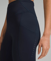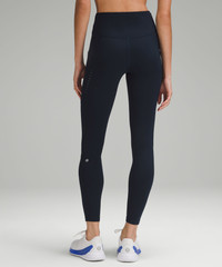 Soft and Warm Brushed Fabric Warm Soft brushed interior Four-way stretch Sweat-wicking Quick-drying 100% of the polyester in this product (excluding trims) is recycled Added Lycra® fibre for stretch and shape retention High Rise, 28" Length Full length intended to sit at ankle Product Features Two side drop-in pockets on the legs fit your phone Three drop-in pockets on the waistband hold small items Continuous drawcord is easy to cinch, won't get lost in the wash, and helps keep your leggings in place so you don't have to pull them up mid-run Reflective details No inseam for a smooth stride Material and care Materials Body: 87% Recycled polyester13% Lycra® elastane Waistband lining: 89% Nylon11% Elastane Care Wash with like colours Machine wash cold Do not bleach Tumble dry low Do not iron Do not dry clean Imported