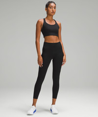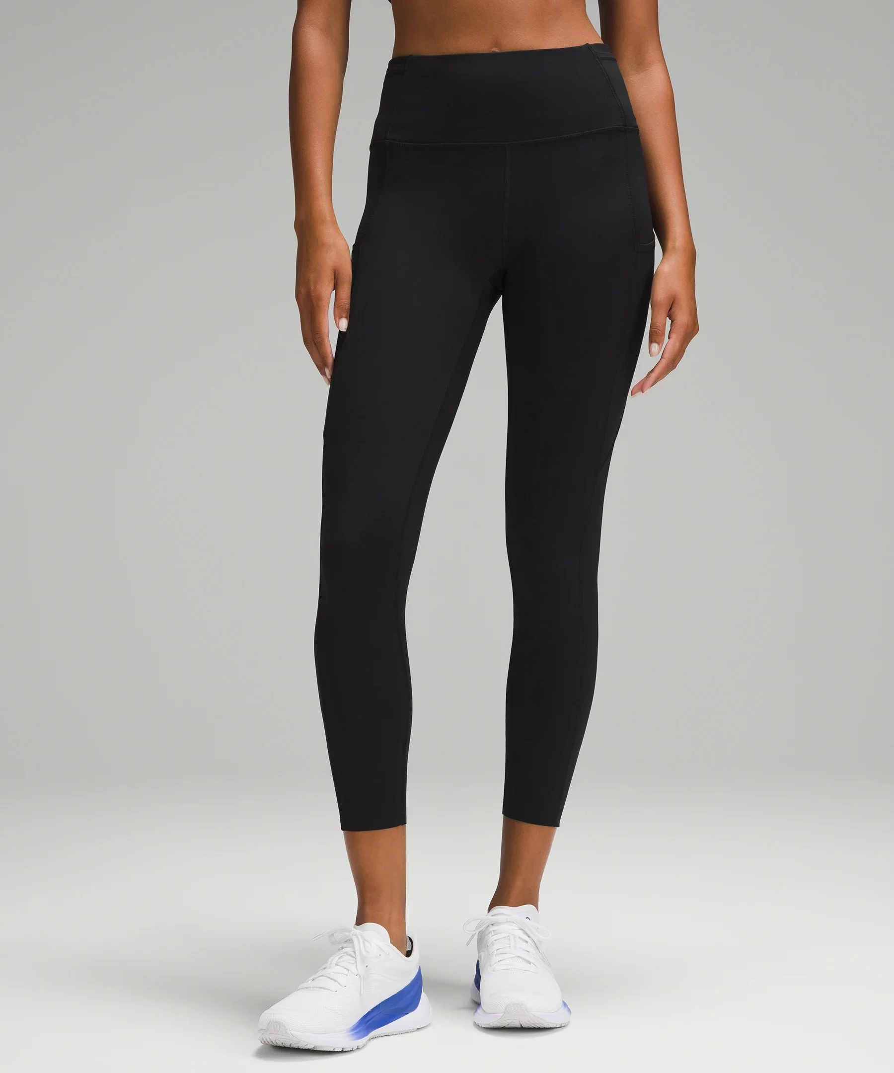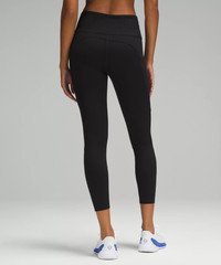 Weightless Coverage, Nulux™ Fabric Weightless coverage that passes the squat test Engineered four-way stretch Quick-drying Sweat-wicking Breathable Feels sleek and cool to the touch Added Lycra® fibre for stretch and shape retention High Rise, 25" Length Intended to sit above ankle Product Features Two side drop-in pockets fit your phone Five drop-in pockets on the waistband hold small items The tighter waistband and continuous drawcord help keep your leggings in place so you don't have to pull them up mid-run Material and care Materials Body: 84% Nylon16% Lycra® elastane Waistband lining: 89% Nylon11% Elastane Care Wash with like colours Machine wash cold Do not bleach Tumble dry low Do not iron Do not dry clean Imported