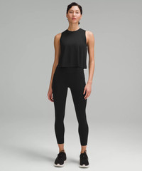 Weightless Coverage, Nulux™ Fabric Weightless coverage Engineered four-way stretch Quick-drying Sweat-wicking Breathable Feels sleek and cool to the touch Added Lycra® fibre for stretch and shape retention High Rise, 25" Length Intended to sit above ankle Product Features Two side drop-in pockets fit your phone Three drop-in pockets on the waistband to hold small items No inseam for a smooth stride Continuous drawcord Reflective details Material and care Materials Body: 84% Nylon16% Lycra® elastane Inner waistband: 89% Nylon11% Elastane Care Wash with like colours Machine wash cold Do not bleach Tumble dry low Do not iron Do not dry clean Imported