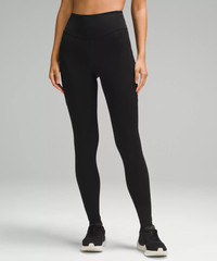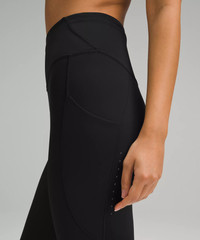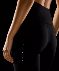 Weightless Coverage, Nulux™ Fabric Weightless coverage that passes the squat test Engineered four-way stretch Quick-drying Sweat-wicking Breathable Feels sleek and cool to the touch Added Lycra® fibre for stretch and shape retention High Rise, 28" Length Full length intended to sit at ankle Product Features Three drop-in pockets on the waistband hold small items Continuous drawcord is easy to cinch, won't get lost in the wash, and helps keep your leggings in place so you don't have to pull them up mid-run No inseam for a smooth stride Reflective details Two side drop-in pockets on the legs fit your phone Material and care Materials Body: 84% Nylon16% Lycra® elastane Inner waistband: 89% Nylon11% Elastane Care Wash with like colours Machine wash cold Do not bleach Tumble dry low Do not iron Do not dry clean Imported