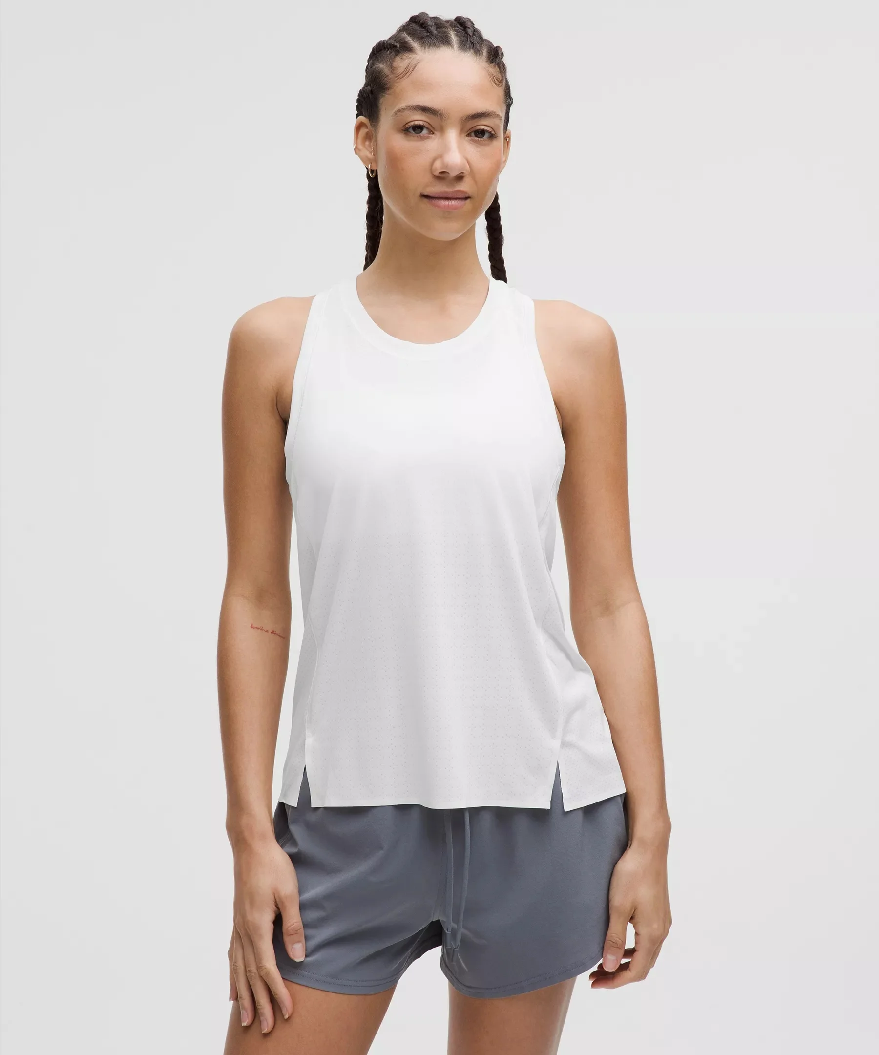 Designed for Running Naturally Breathable, Mesh Fabric - Naturally breathable - Sweat-wicking - Quick-drying - Added stretch - 100% of the polyester in this product is recycled (excluding trims) Relaxed Fit, Hip Length - A loose fit with a little extra room - Sits below the waistband for moderate, everyday coverage Product Features - Hem slits for added mobility - No-Stink Zinc™ technology inhibits the growth of odour-causing bacteria on the fabric Material and care Materials Shoulder Strap: 100% Recycled Polyester - Body: 100% Recycled Polyester - Back Fabric: 100% Recycled Polyester Care Machine Wash Cold - Do Not Bleach - Tumble Dry Low - Do Not Iron - Do Not Dry Clean - Contains biocidal zinc pyrithione (nano) Inhibits odour-causing bacteria - Wash With Like Colors