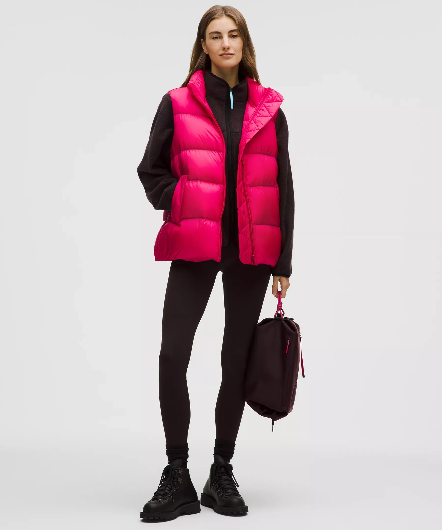 Designed for Casual Lightweight, Water-Repellent Fabric - Water-repellent - So lightweight, it feels like a cloud - 900-fill-power goose down insulates through extra loft for warmth with a weightless feel - 100% of our down is certified to the Responsible Down Standard (RDS) by Control Union (No. 847515) - Tumble dry with dryer balls to help down feathers puff back up. Ensure garment is fully dry before removing from the dryer - This fabric has a transparent look that will show any natural discolouration in down feathers - Lie the garment flat and pat down to encourage the even redistribution of feathers Relaxed Fit, Hip Length - Relaxed fit feels roomy and can be worn over larger layers. Size down if you prefer a slimmer fit Product Features - Zippered hand pockets - Pack the vest into the small pouch clipped into the right-hand pocket - Cinchable waist and hem - Mid warmth is designed with zoned RDS Down or PrimaLoft® insulation to regulate body temperature Material and care Materials Lining: 100% Nylon - Trim Filling: 75% Recycled Polyester25% Polyester - Pouch: 100% Nylon - Body: 100% Nylon - Filling: 90% White Goose Down10% White Goose Feather Care Machine Wash Cold - Do Not Bleach - Tumble Dry Low - Do Not Iron - Do Not Dry Clean - Contains Non-Textile Parts of Animal Origin - Fully Zip Before Washing - Tumble Dry Low With Clean Tennis Balls - Wash With Like Colors