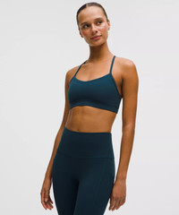 Designed for Yoga and Pilates Feels Buttery-Soft and Weightless, Nulu™ Fabric - So buttery soft, it feels weightless - Four-way stretch - Sweat-wicking - Breathable - Added Lycra® fibre for stretch and shape retention Light Support, A–C Cups - Intended for low-impact activities Product Features - Pockets for optional, removable cups Material and care Materials Middle Layer: 89% Nylon11% Elastane - Bra: 81% Nylon19% Lycra Elastane - Lining: 56% Polyester33% Coolmax Polyester11% Lycra Elastane Care Machine Wash Cold - Do Not Bleach - Tumble Dry Low - Do Not Iron - Do Not Dry Clean - Wash With Like Colors