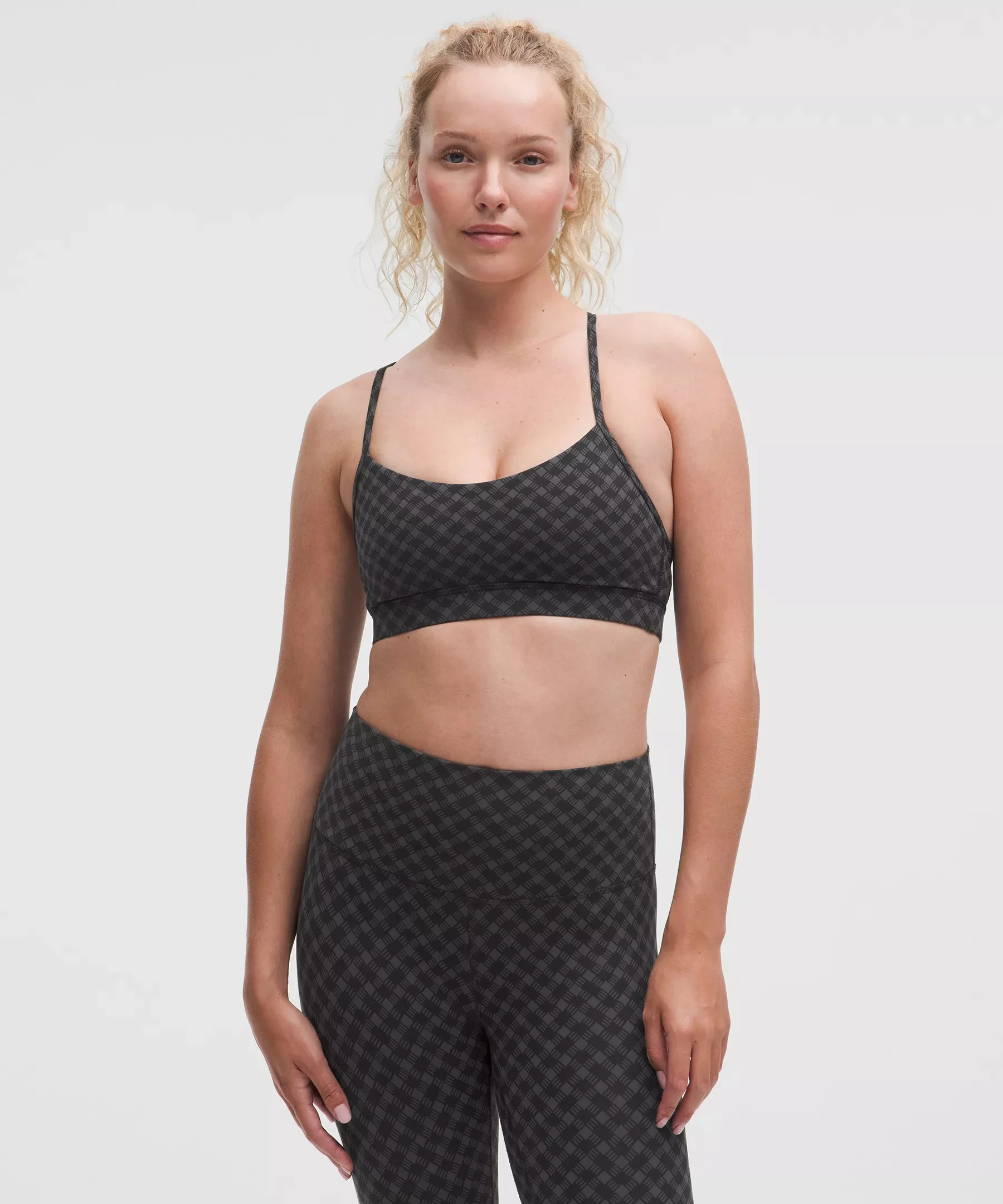 Designed for Yoga and Pilates Feels Buttery-Soft and Weightless, Nulu™ Fabric - So buttery soft, it feels weightless - Four-way stretch - Sweat-wicking - Breathable - Added Lycra® fibre for stretch and shape retention - Our jacquard technique creates fabric with a rich texture Light Support, A–C Cups - Intended for low-impact activities Product Features - Pockets for optional, removable cups Material and care Materials Middle Layer: 89% Nylon11% Elastane - Bra: 79% Nylon21% Lycra Elastane - Bra Lining: 56% Polyester33% Coolmax Polyester11% Lycra Elastane Care Machine Wash Cold - Do Not Bleach - Tumble Dry Low - Do Not Iron - Do Not Dry Clean - Wash With Like Colors