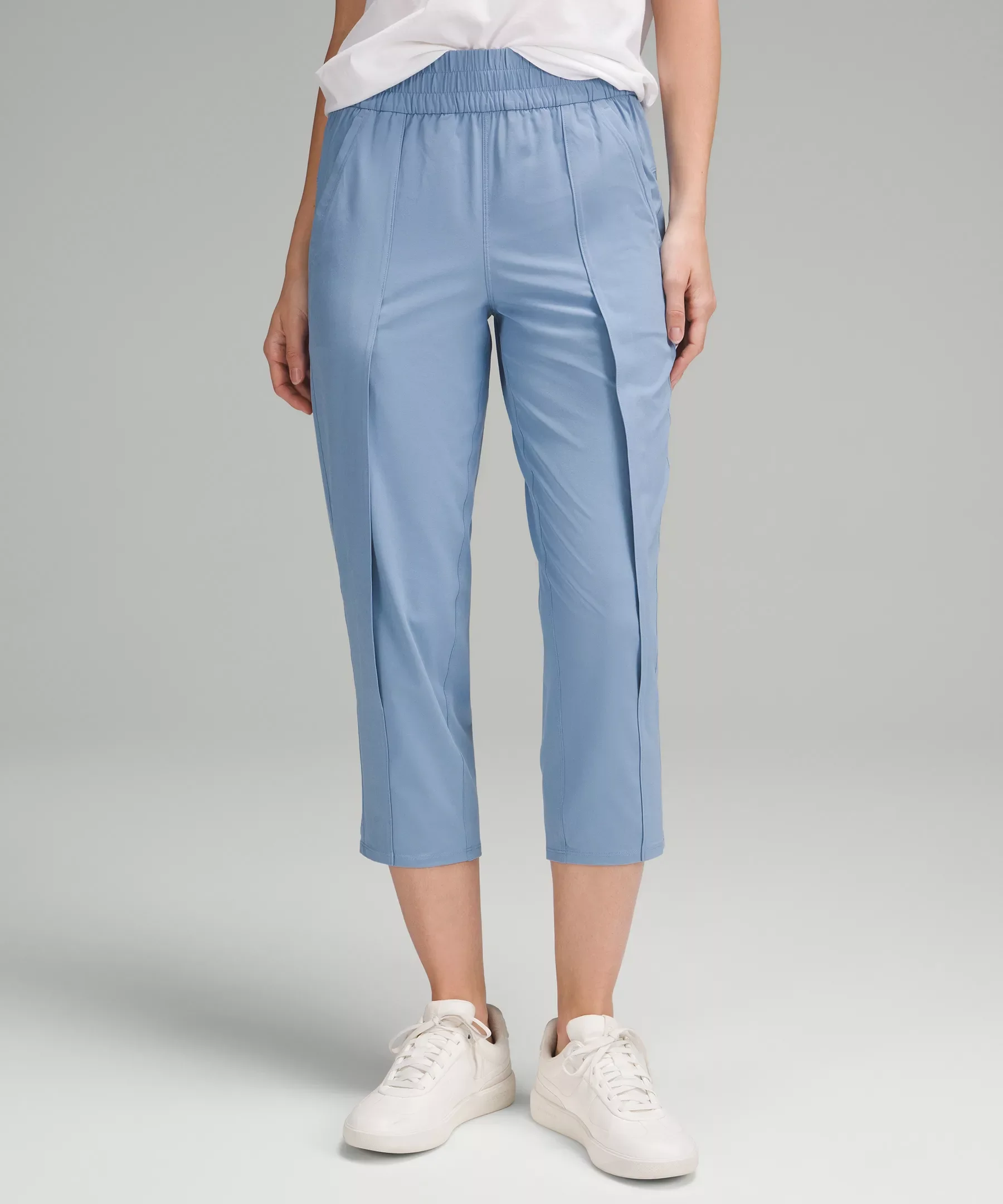 Designed for Casual Lightweight, Swift Fabric - Lightweight - Four-way stretch - Sweat-wicking - Quick-drying Mid Rise, Cropped Length - Relaxed fit is roomy through glutes and thighs - Tapered from knee to hem - Intended to sit below calf Product Features - Hand pockets - Elastic waistband Material and care Materials All: 86% Recycled Polyester14% Elastane Care Machine Wash Cold - Do Not Bleach - Tumble Dry Low - Do Not Iron - Do Not Dry Clean - Wash With Like Colors