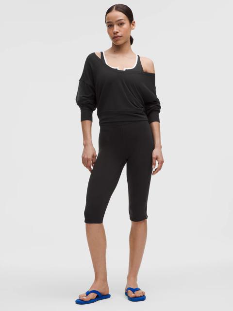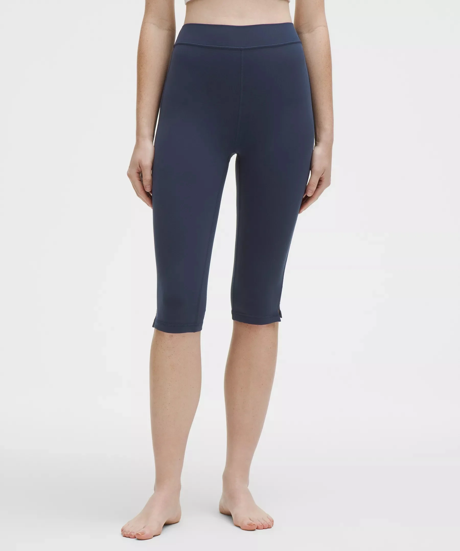 Designed for Yoga Feels Buttery-Soft and Weightless, Nulu™ Fabric - So buttery soft, it feels weightless - Four-way stretch - Sweat-wicking - Breathable - Added Lycra® fibre for stretch and shape retention High Rise, 15" Length - Intended to sit just below knee Product Features - Back drop-in pocket - Side slits at the hems Material and care Materials Body: 81% Nylon19% Lycra Elastane Care Machine Wash Cold - Do Not Bleach - Tumble Dry Low - Do Not Iron - Do Not Dry Clean - Wash With Like Colors