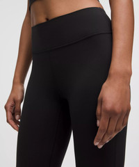 Designed for Yoga and Casual Feels Buttery-Soft and Weightless, Nulu™ Fabric - So buttery soft, it feels weightless - Four-way stretch - Sweat-wicking - Breathable - Added Lycra® fibre for stretch and shape retention High Rise, Full Length - Hugs your body from waist to knee - Flares out from the knee to hem - 35' inseam, intended to skim the floor for heights of 5'9" and above Product Features - Back drop-in waistband pocket holds a card, key, or cell phone Material and care Materials Body: 81% Nylon19% Lycra Elastane Care