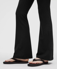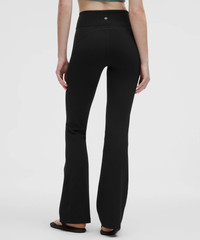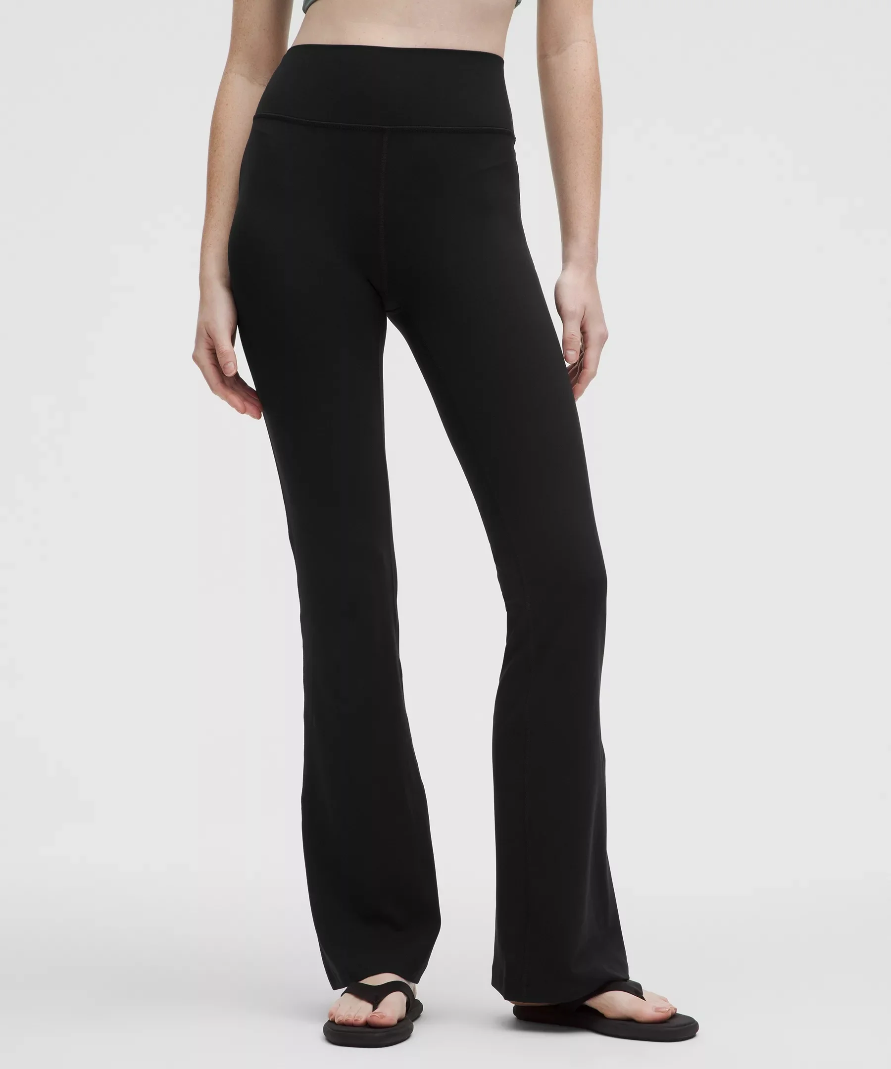 Designed for Yoga and Casual Feels Buttery-Soft and Weightless, Nulu™ Fabric - So buttery soft, it feels weightless - Four-way stretch - Sweat-wicking - Breathable - Added Lycra® fibre for stretch and shape retention High Rise, Full Length - Hugs your body from waist to knee - Flares out from the knee to hem - 32.5" inseam, intended to skim the floor for heights of 5'5"-5'8" Product Features - Back drop-in waistband pocket holds a card, key, or cell phone Material and care Materials Body: 81% Nylon19% Lycra Elastane Care