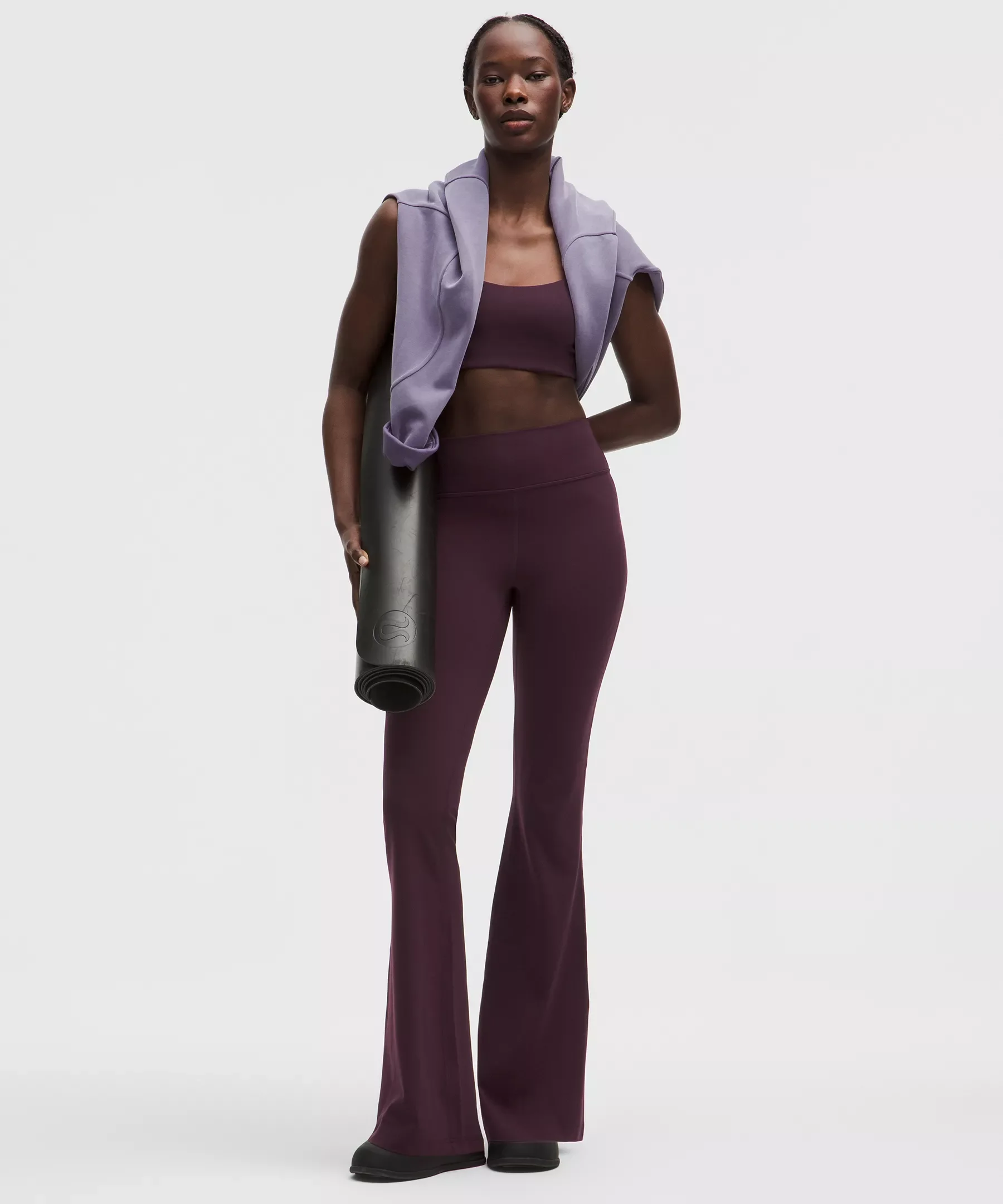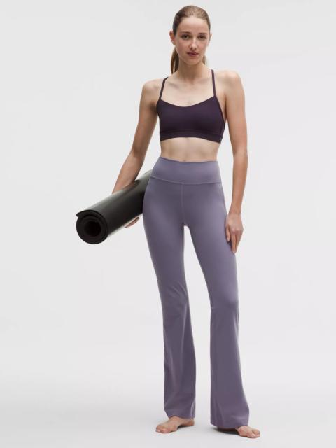 Designed for Yoga and Pilates Feels Buttery-Soft and Weightless, Nulu™ Fabric - So buttery soft, it feels weightless - Four-way stretch - Sweat-wicking - Breathable - Added Lycra® fibre for stretch and shape retention High Rise, Full Length - Hugs your body from waist to knee - Flares out from the knee to hem - 32.5" inseam, intended to skim the floor for heights of 5'5"-5'8" Product Features - Back drop-in waistband pocket holds a card, key, or cell phone Material and care Materials Body: 81% Nylon19% Lycra Elastane Care Machine Wash Cold - Do Not Bleach - Tumble Dry Low - Do Not Iron - Do Not Dry Clean - Wash With Like Colors
