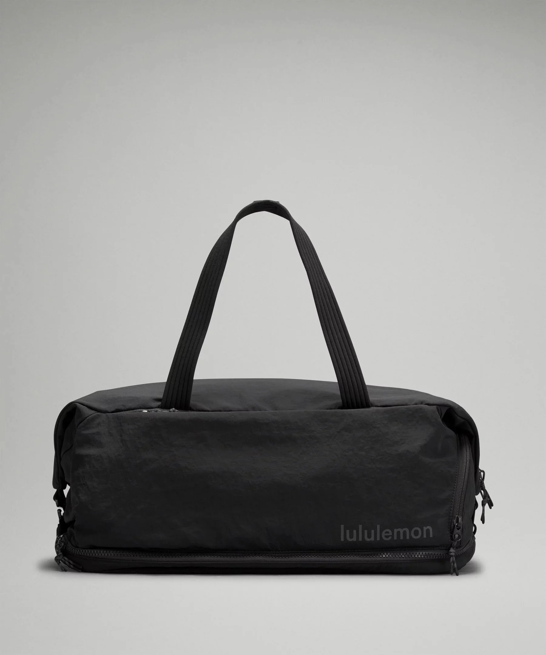 Water-Repellent Fabric Measurements Bag dimensions: 45cm x 26cm x 19.5cm (17.7" x 10.2" x 7.7") Volume: 30L Product Features Carry it by the handles or across the body with the detachable strap Large main compartment Separate compartments for shoes and sweaty gear Exterior pocket fits most shoes up to men's size 14 Side zippered pocket fits most water bottles up to 24oz (750ml) Interior pockets to organize your small items of importance Cushioned straps maximize comfort Bonus: Includes separate drawstring pouch for sweaty clothes Material and care Materials Mesh: 100% Recycled polyester Lining: 100% Nylon Body: 100% Recycled nylon Care Spot clean Do not wash Do not bleach Do not tumble dry Do not iron Do not dry clean Imported