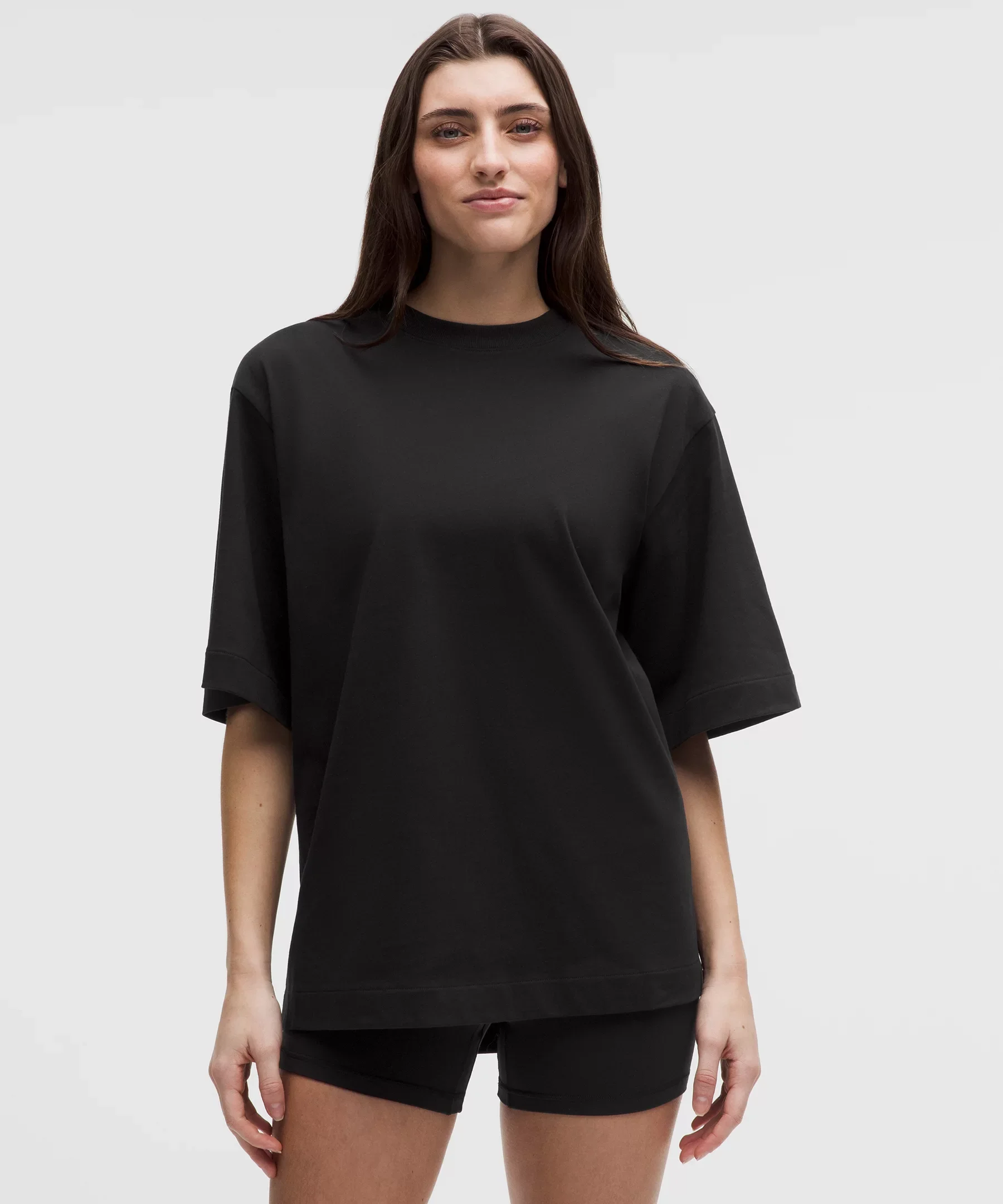 Designed for Casual Heavyweight, Cotton Jersey Fabric - Heavyweight - Four-way stretch - Sweat-wicking - Quick-drying - Naturally breathable Oversized Fit, Bum-Covering Length - An exaggerated fit that feels extra roomy - Long length keeps bum and hips covered Product Features - Ribbed neckband Material and care Materials Body: 100% Cotton - Rib: 95% Cotton5% Elastane Care Machine Wash Cold - Do Not Bleach - Tumble Dry Low - Do Not Iron - Do Not Dry Clean - Wash With Like Colors
