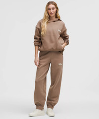 Soft, Heavyweight Fleece Fabric Soft and smooth on the outside Plush, fleecy interior Heavyweight Stretchy 100% of the polyester in this product is recycled (excluding trims) Mid Rise, Full Length Oversized fit is exaggerated and feels extra roomy Full length intended to sit at ankle Product Features Cinch the interior waist drawcord to customize your fit Front pockets with interior card sleeve We added a dart at the hem for a slightly tapered shape that keeps the hem off the floor Material and care Materials Pockets: 100% Cotton Body: 66% Recycled Polyester29% Cotton5% Elastane Care Wash with like colours Machine wash cold Do not bleach Tumble dry low Do not iron Do not dry clean