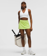Designed for Tennis Soft, Sleek Fabric - Soft, sleek, and supportive - Sweat-wicking - Quick-drying - Has a smooth, lightweight feel with a matte finish High Rise, Mini Length - Slim fit skims your body - 2.5" liner length Product Features - Drop-in pockets on the liner - Built-in liner offers extra coverage Material and care Materials Body: 82% Nylon18% Elastane - Back Lining: 69% Nylon31% Lycra Elastane - Front Lining: 87% Nylon13% Lycra Elastane - Contrast: 77% Polyester23% Lycra Elastane Care Machine Wash Cold - Do Not Bleach - Tumble Dry Low - Do Not Iron - Do Not Dry Clean - Wash With Like Colors