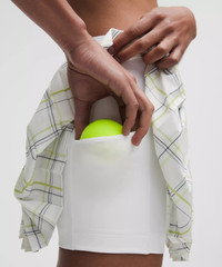 Designed for Tennis Lightweight, Swift Fabric - Lightweight - Four-way stretch - Sweat-wicking - Quick-drying - Built-in Luxtreme™ fabric liner is sweat-wicking and four-way stretch with a cool, smooth feel Fit Information - High rise - Skirt length is measured at the centre front, from the top of the waistband to the hem - Skirt length by size: 0–2: 12.5", 4–6: 13", 8–10: 13.5", 12–14: 14" - Liner length for all sizes: 3” Product Features - Stash your stuff in the side drop-in pockets on the short liner - Built-in liner offers extra coverage Material and care Materials Front Lining: 87% Nylon13% Lycra Elastane - Back Lining: 69% Nylon31% Lycra Elastane - Waistband: 87% Nylon13% Lycra Elastane - Body: 86% Recycled Polyester14% Elastane Care Machine Wash Cold - Do Not Bleach - Tumble Dry Low - Do Not Iron - Do Not Dry Clean - Wash With Like Colors