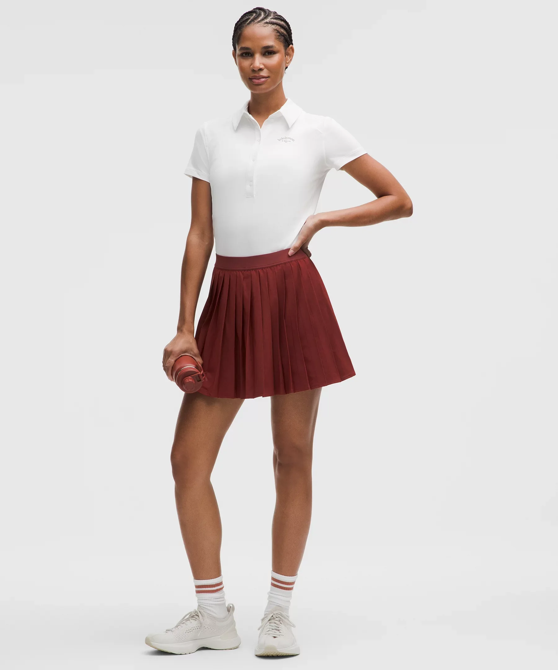 Designed for Tennis Lightweight, Swift Fabric - Lightweight - Four-way stretch - Sweat-wicking - Quick-drying - Built-in Luxtreme™ fabric liner is sweat-wicking and four-way stretch with a cool, smooth feel Fit Information - High rise - Skirt length is measured at the centre front, from the top of the waistband to the hem - Skirt length by size: 0–2: 14.5", 4–6: 15", 8–10: 15.5", 12–14: 16" - Liner length for all sizes: 4.5” Product Features - Built-in liner offers extra coverage - Stash your stuff in the side drop-in pockets on the short liner Material and care Materials Front Lining: 87% Nylon13% Lycra Elastane - Back Lining: 69% Nylon31% Lycra Elastane - Waistband: 87% Nylon13% Lycra Elastane - Body: 86% Recycled Polyester14% Elastane Care Machine Wash Cold - Do Not Bleach - Tumble Dry Low - Do Not Iron - Do Not Dry Clean - Wash With Like Colors