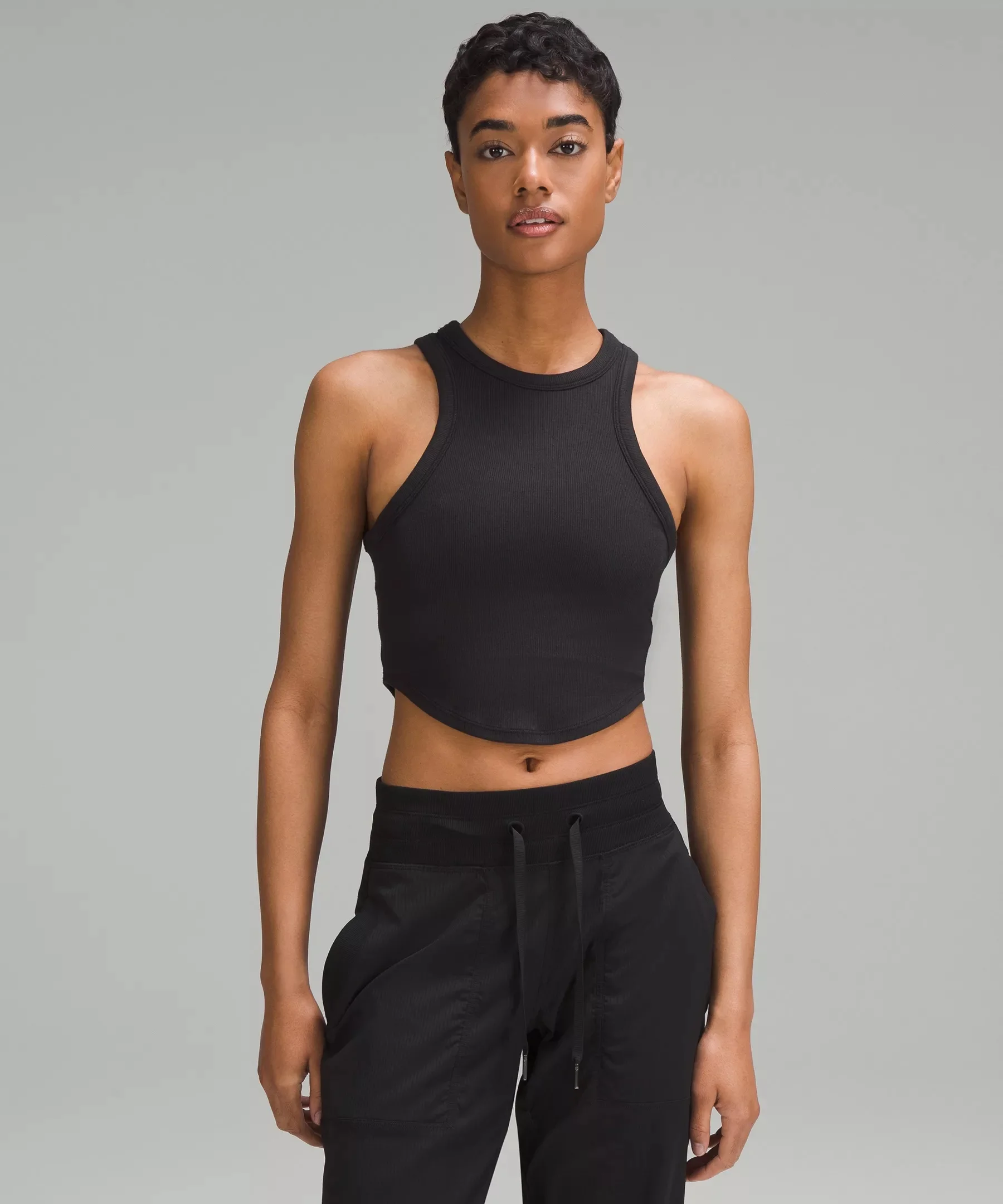 Soft, Ribbed Modal Fabric Soft Four-way stretch Fabric is derived from responsibly sourced wood-based materials that support the protection of ancient and endangered forests Tight Fit, Cropped Length Contours your body Cut above the waist—perfect with high-rise pants Material and care Materials Body: 94% Lenzing® modal6% Elastane Care Wash with like colours Machine wash cold Do not bleach Tumble dry low Do not iron Do not dry clean Imported