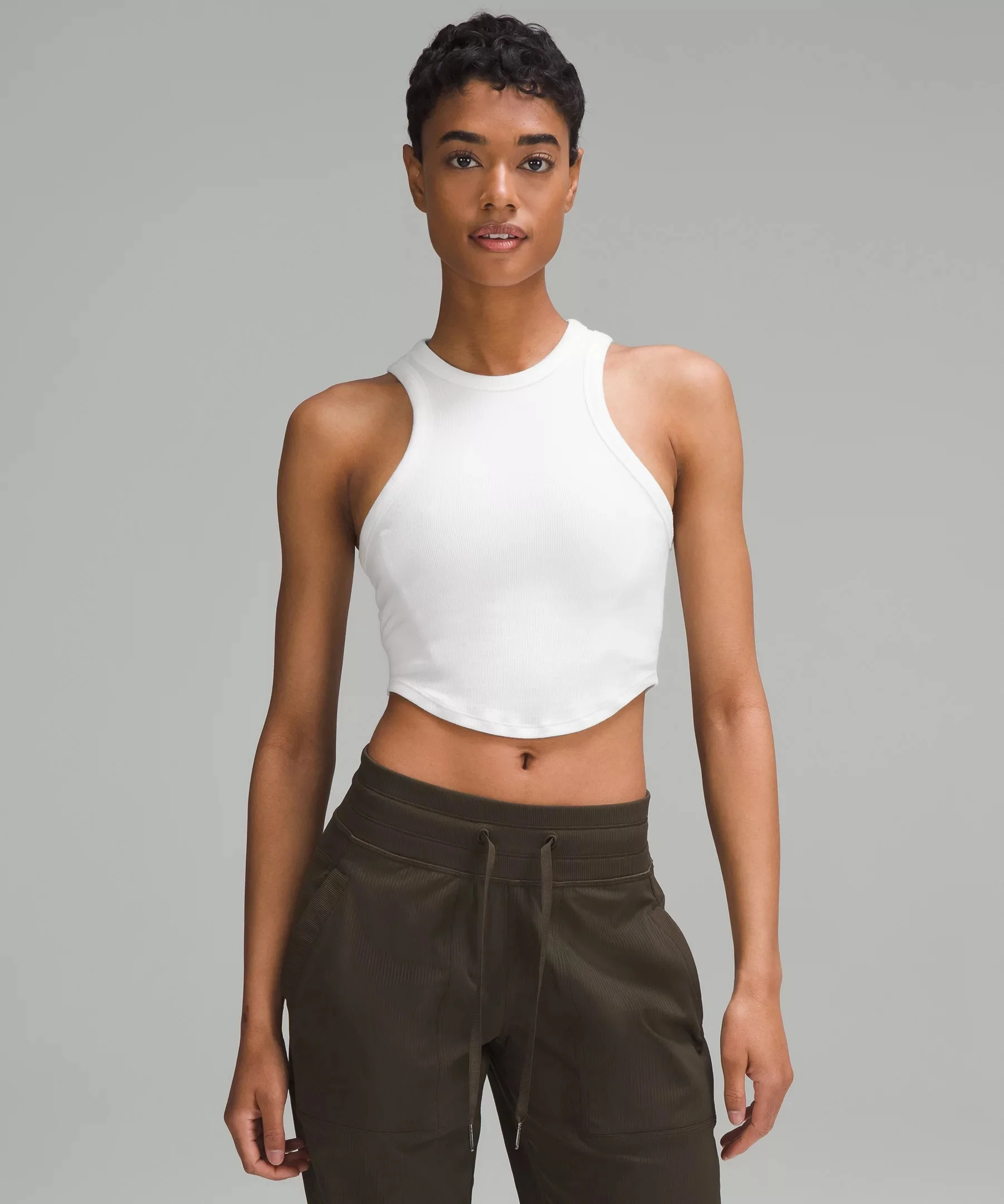 Soft, Ribbed Modal Fabric Soft Four-way stretch Fabric is derived from responsibly sourced wood-based materials that support the protection of ancient and endangered forests Tight Fit, Cropped Length Contours your body Cut above the waist—perfect with high-rise pants Material and care Materials Body: 94% Lenzing® modal6% Elastane Care Wash with like colours Machine wash cold Do not bleach Tumble dry low Do not iron Do not dry clean Imported