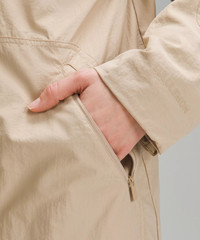 Water-Repellent, Glyde™ Fabric Water-repellent Windproof Dry-touch feel Oversized Fit, Thigh Length Oversized fit is purposefully large with exaggerated proportions. Size down if you prefer a slimmer fit Product Features Zippered hand pockets with hidden phone sleeve Discreet zippered chest pockets Secure internal pockets for your phone or passport Stowable hood Adjustable cuffs Cinchable hem Material and care Materials Body: 100% Nylon Lining: 100% Recycled polyester Care Wash with like colours Machine wash cold Do not bleach Tumble dry low Do not iron Do not dry clean Imported