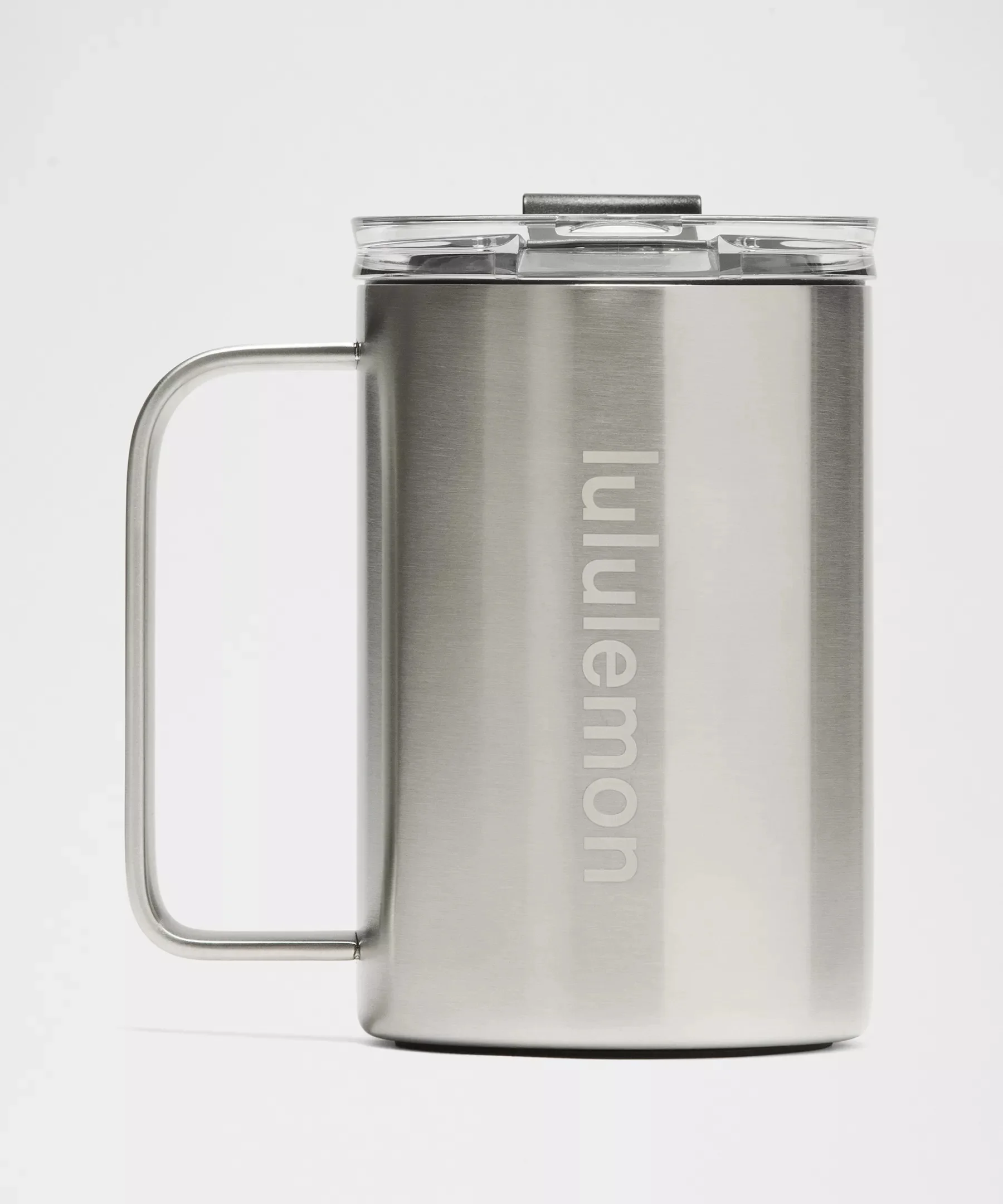 Designed for Casual Dimensions and Volume - Dimensions: 13.1cm x 8cm (5.2" x 3.1") - Volume: 12oz (350ml) Product Features - Double walled, stainless steel design keeps your drink hot or cold - Ambidextrous, screw-top lid is leakproof - Secure lid flap opens and closes easily for one-handed sipping—snap the flap onto to the rim of the lid to keep it out of the way when in use - Ergonomically designed handle is comfortable to hold - Built-in silicone coaster - Care Instructions: Wash before use. Please hand-wash the body of the mug to preserve the finish. Lid is dishwasher safe on top rack only. Do not put in the microwave or freezer - Always use caution when handling hot beverages. Do not close the lid if contents exceed 165°F (73°C) Material and care Materials Top: 100% Tritan Copolyester - Body: 100% Steel - Bottom: 100% Silicone Care Body - Hand Wash Only - Do Not Use with Hot Water - Lid - Dishwasher Top Rack - Wash Before Use
