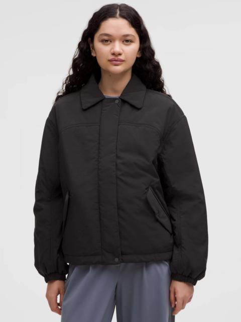 Water-Resistant, Glyde™ Fabric Water-resistant Windproof Soft crinkle texture PrimaLoft® insulation is warm, even when wet Mid Warmth, Insulated to Regulate Body Temperature Mid warmth is designed with zoned RDS Down and PrimaLoft® insulation to regulate body temperature Fit and Features Snap-closure hand pockets with a hidden phone sleeve Zippered interior pockets Cinchable hem Close-fitting cuffs Oversized fit is purposefully large with exaggerated proportions. Size down if you prefer a slimmer fit Hip length Material and care Materials Lining: 100% Recycled Polyester Body Filling: 100% Recycled Polyester Body: 100% Nylon Care Wash with like colours Machine wash cold Do not bleach Tumble dry low Do not iron Do not dry clean