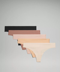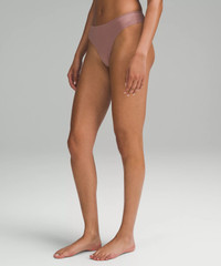 Smooth, Lightweight Fabric Smooth and lightweight A tight knit provides a snug feel and helps prevent slippage Sweat-wicking Quick-drying Four-way stretch Added Lycra® fibre for stretch and shape retention Breathable cotton gusset Mid Rise, Thong Cut Mid rise sits 1” below our mid-rise shorts, crops, pants, and leggings Wide front panel for coverage Material and care Materials Body: 71% Nylon29% Lycra® elastane Gusset: 100% Cotton Care Wash with like colours Machine wash cold Do not bleach Tumble dry low Do not iron Do not dry clean Imported