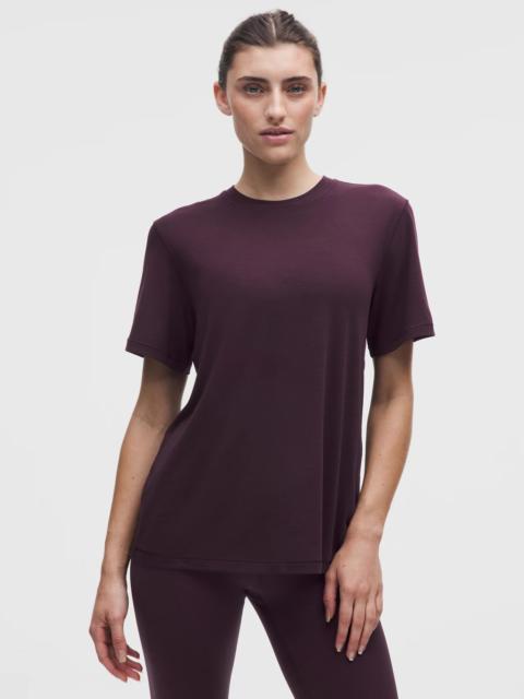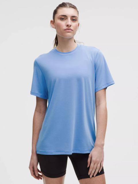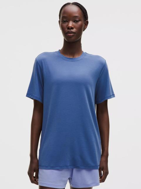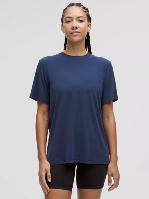 Soft, Jersey Fabric Added Lyocell fibre for softness Four-way stretch Sweat-wicking Quick-drying Added Lycra® fibre for stretch and shape retention 100% of the polyester in this product is recycled (excluding trims) Fabric is derived from responsibly sourced wood-based materials that support the protection of ancient and endangered forests This fabric is treated with a natural additive derived from plant seeds to make it sweat-wicking Relaxed Fit, Hip Length A loose fit with a little extra room Sits below the waistband for moderate, everyday coverage Product Features More wearing, less washing. This garment was treated with our No-Stink Zinc™ technology to inhibit the growth of odour-causing bacteria on the fabric Material and care Materials Body: 75% Recycled Polyester19% Lyocell6% Lycra Elastane Care Wash with like colours Machine wash cold Do not bleach Tumble dry low Do not iron Do not dry clean Imported