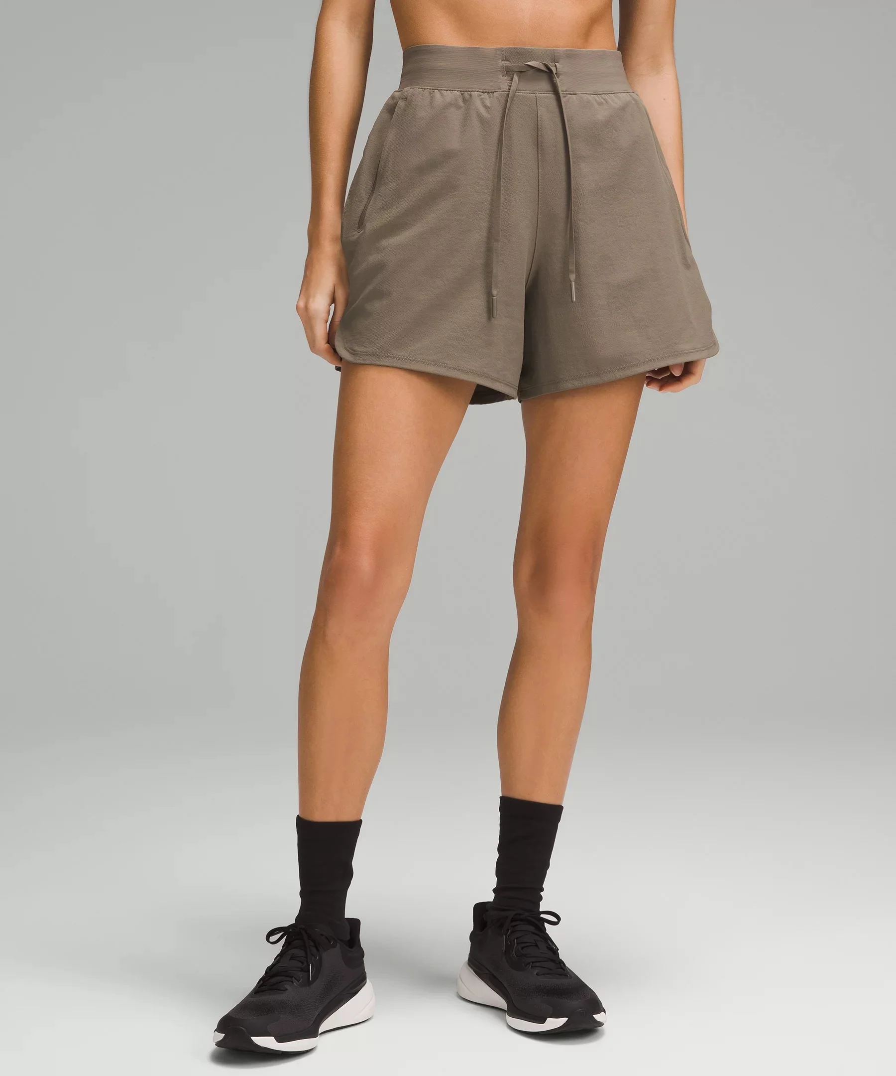 Abrasion-Resistant Fabric Abrasion-resistant Sweat-wicking Quick-drying This product contains recycled nylon made from repurposed plastic waste High Rise, 4" Length Relaxed fit is roomy through glutes and thighs Product Features Zippered hand pockets with hidden card sleeve Waistband drawcord can be worn inside or out Locker loop for easy hanging Material and care Materials Pocket: 86% Recycled polyester14% Elastane Body: 85% Recycled nylon15% Elastane Care Wash with like colours Machine wash cold Do not bleach Tumble dry low Do not iron Do not dry clean Imported