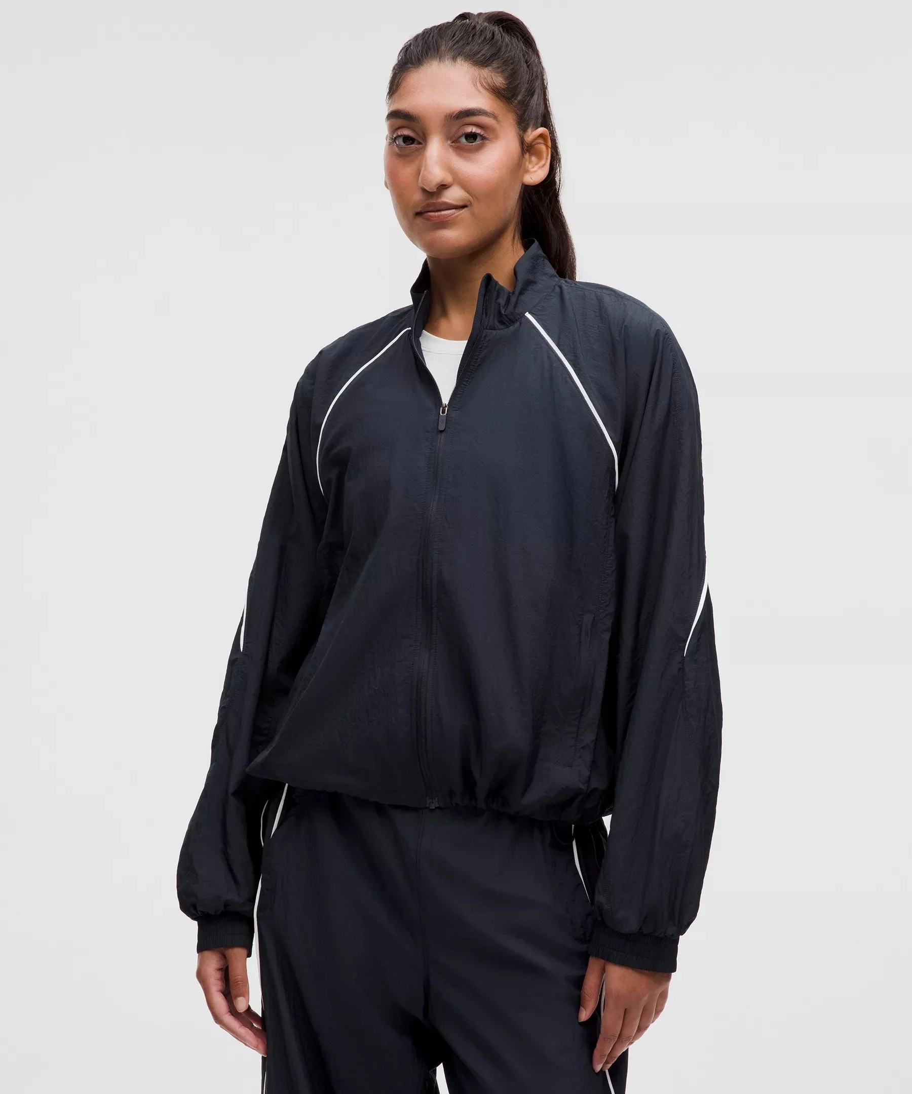 Abrasion-Resistant Fabric Abrasion-resistant Water-repellent Relaxed Fit, Waist Length A loose fit with a little extra room Not too short, not too long, just right around the waistband Product Features Zippered hand pockets with hidden card sleeve Zipper garage keeps chafe in check Cinch the shock cords at the hem to adjust the shape and fit Material and care Materials Body: 100% Nylon Lining: 86% Recycled Polyester14% Elastane Care Wash with like colours Machine wash cold Do not bleach Tumble dry low Do not iron Do not dry clean