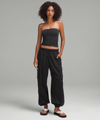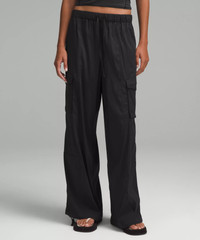 Lightweight, Drapey Fabric Lightweight Natural hand feel Has a lived-in, crinkly look Fabric is derived from responsibly sourced wood-based materials that support the protection of ancient and endangered forests 100% of the polyester in this product is recycled (excluding trims) Mid Rise, Full Length Full length intended to sit at ankle Oversized fit Product Features Hand pockets with hidden card sleeve Cargo pockets Pull and tie the drawcords at the hems to change the shape Elasticated waistband with adjustable drawcord Care Wash with like colours Machine wash cold Do not bleach Tumble dry low Do not iron Do not dry clean Imported
