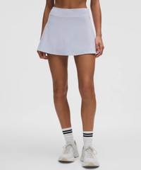 Designed for Tennis Lightweight, Swift Fabric - Lightweight - Four-way stretch - Sweat-wicking - Quick-drying - Built-in Luxtreme™ fabric liner is sweat-wicking and four-way stretch with a cool, smooth feel - Added Lycra® fibre for stretch and shape retention Fit Information - High rise - Skirt length is measured at the centre front, from the top of the waistband to the hem - Skirt length by size: 0–2: 13", 4–6: 13.5", 8–10: 14", 12–14: 14.5" - Liner length for all sizes: 3.5” Product Features - Built-in liner offers extra coverage - Drop-in pockets on the liner - Continuous drawcord - Silicone grippers on the hem prevent ride-up Material and care Materials Back Lining: 69% Nylon31% Lycra Elastane - Waistband: 78% Nylon22% Elastane - Front Lining: 87% Nylon13% Lycra Elastane - Body: 86% Recycled Polyester14% Elastane Care Machine Wash Cold - Do Not Bleach - Tumble Dry Low - Do Not Iron - Do Not Dry Clean - Wash With Like Colors